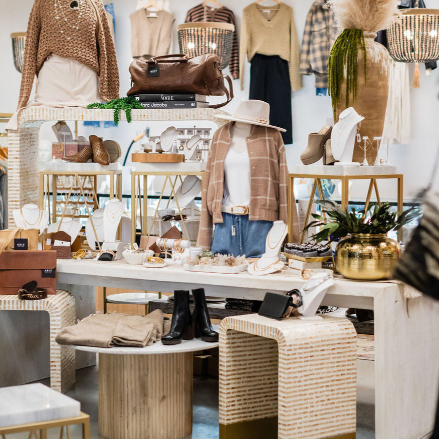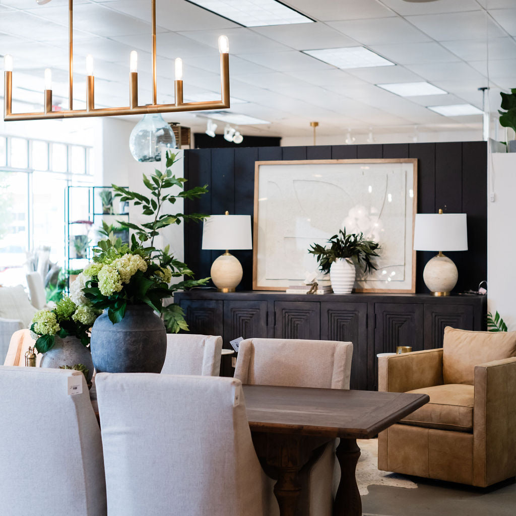 Step into a shopping experience like no other -- a carefully curated lifestyle boutique where furniture, home decor, and fashion come together in a stunning, immersive showroom. From thoughtfully styled furniture vignettes to shelves of unique decor, every corner of our shop is designed to inspire.