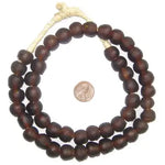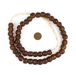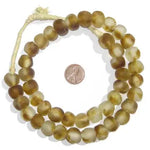 Recycled glass beads are a type of indigenously produced African bead from Ghana West Africa. These beautiful recycled beads are made to resemble the texture of natural resin using an old method that has been used for centuries. The glass itself is derived from a variety of recycled sources including old beverage and medicine bottles. The procedure for making the beads consists of a number of steps whereby powdered glass is poured into molds of clay.