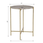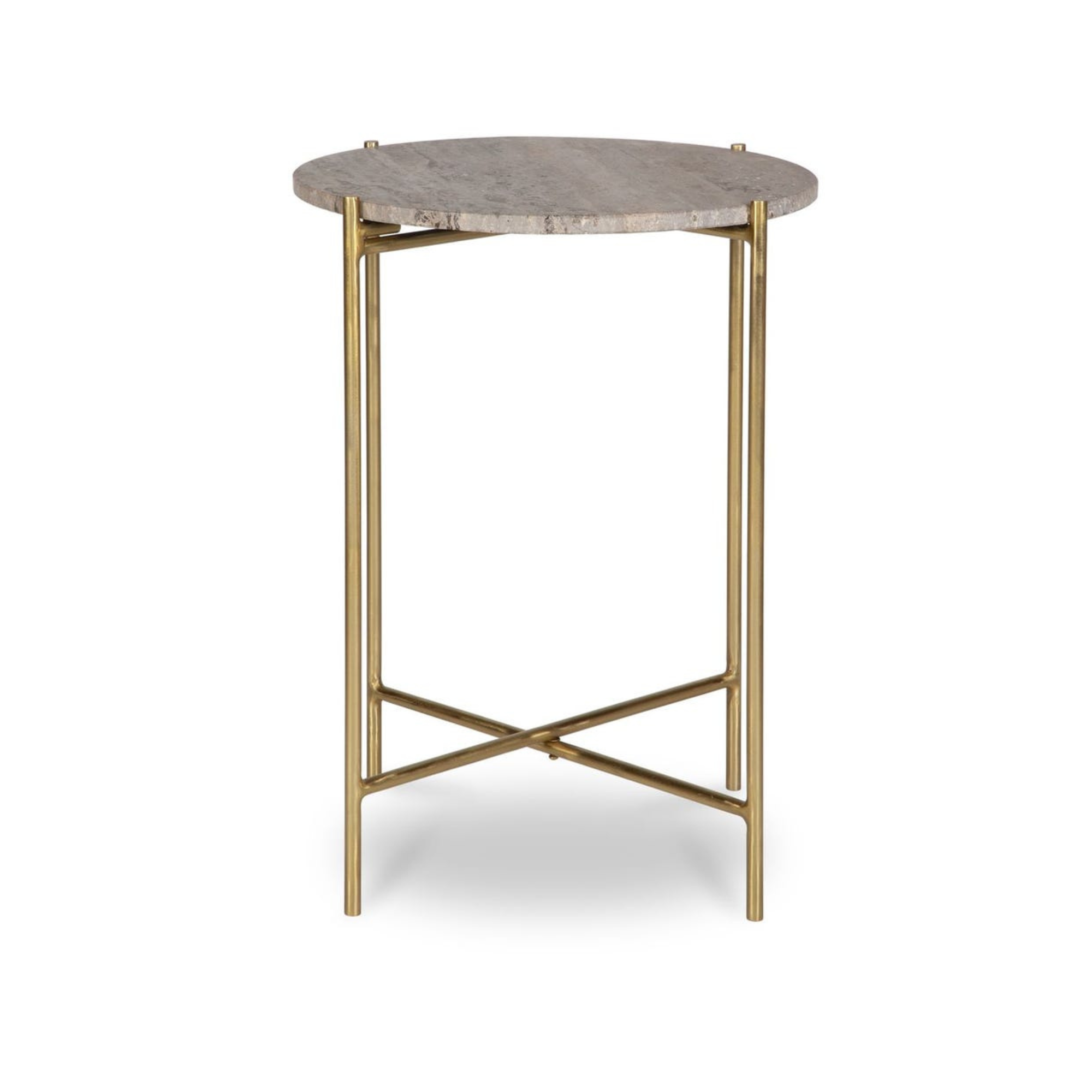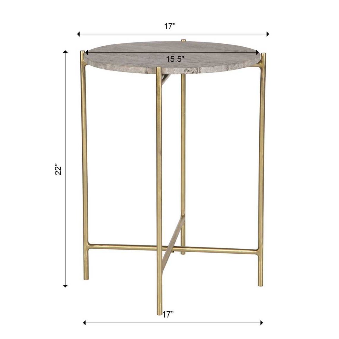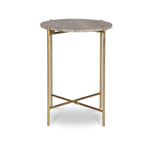 The striking dark travertine surface commands visual interest while maintaining understated elegance. This accent table pairs a luxurious stone top with a refined iron gold base, creating a sophisticated focal point that harmonizes with diverse interior schemes. Position it beside seating to showcase the stone's natural depth and warmth—a thoughtfully designed piece that elevates any room's aesthetic.