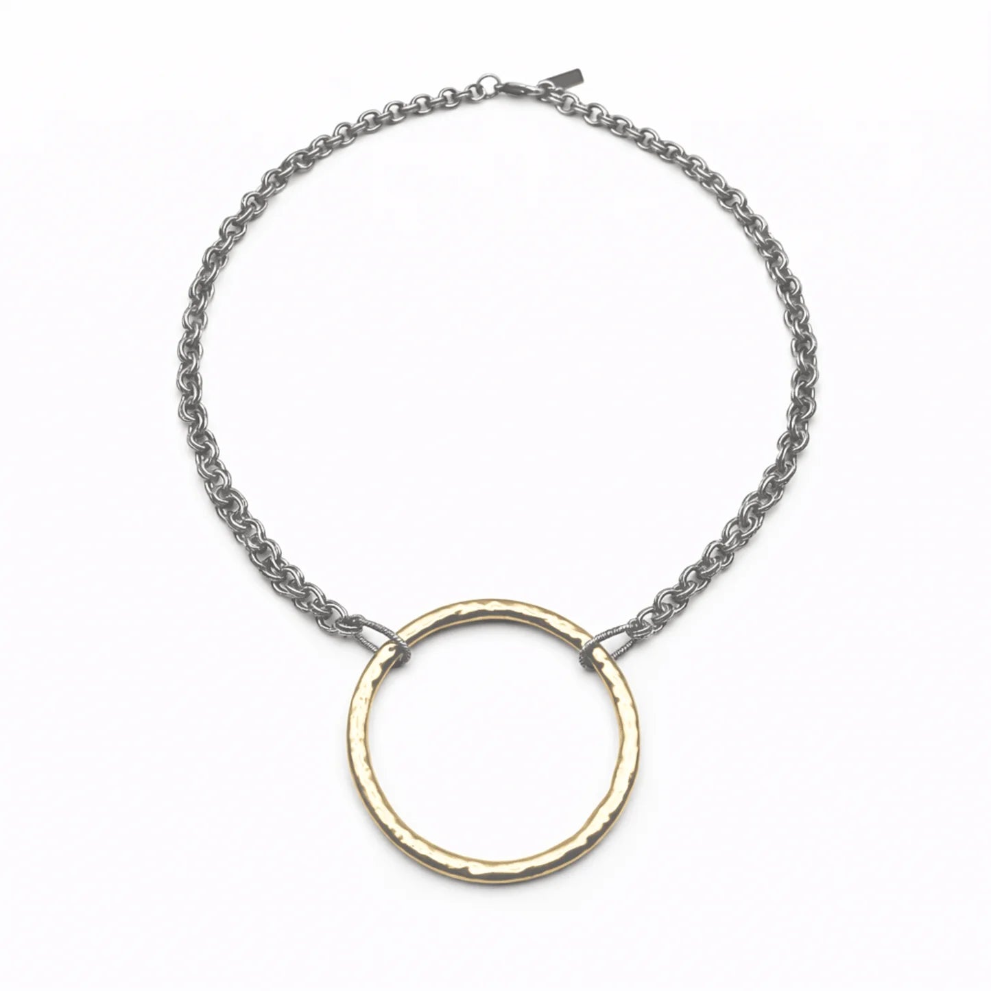Mark a milestone moment with this striking mixed metal necklace, expertly designed to elevate your everyday wardrobe. The signature oversized gold pendant commands attention when layered against a contemporary silver double-chain construction, creating sophisticated visual contrast. This versatile piece transitions seamlessly from casual basics to refined occasions, making it an essential addition to any curated jewelry collection.