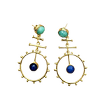 Experience a burst of color and elegance with our Amazonite & Emerald Spoke Hoops. These stunning earrings feature a unique spoke design, combining the serene, mint-green hues of amazonite with the rich, vibrant green of emerald gemstones. The dynamic arrangement of these stones creates a captivating and sophisticated visual effect.