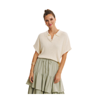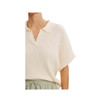This refined rib knit sweater combines timeless design with modern comfort. The distinctive split collar and short dolman sleeves create an effortlessly polished silhouette, while the relaxed boxy cut ensures unrestricted movement. Crafted from a carefully balanced cotton-viscose blend, it delivers exceptional breathability and drape—making it an intelligent choice for unpredictable seasons and layering strategies. The versatile neutral aesthetic pairs seamlessly with tailored trousers, midi skirts, or classic denim, positioning it as a foundational piece for any thoughtfully curated wardrobe.