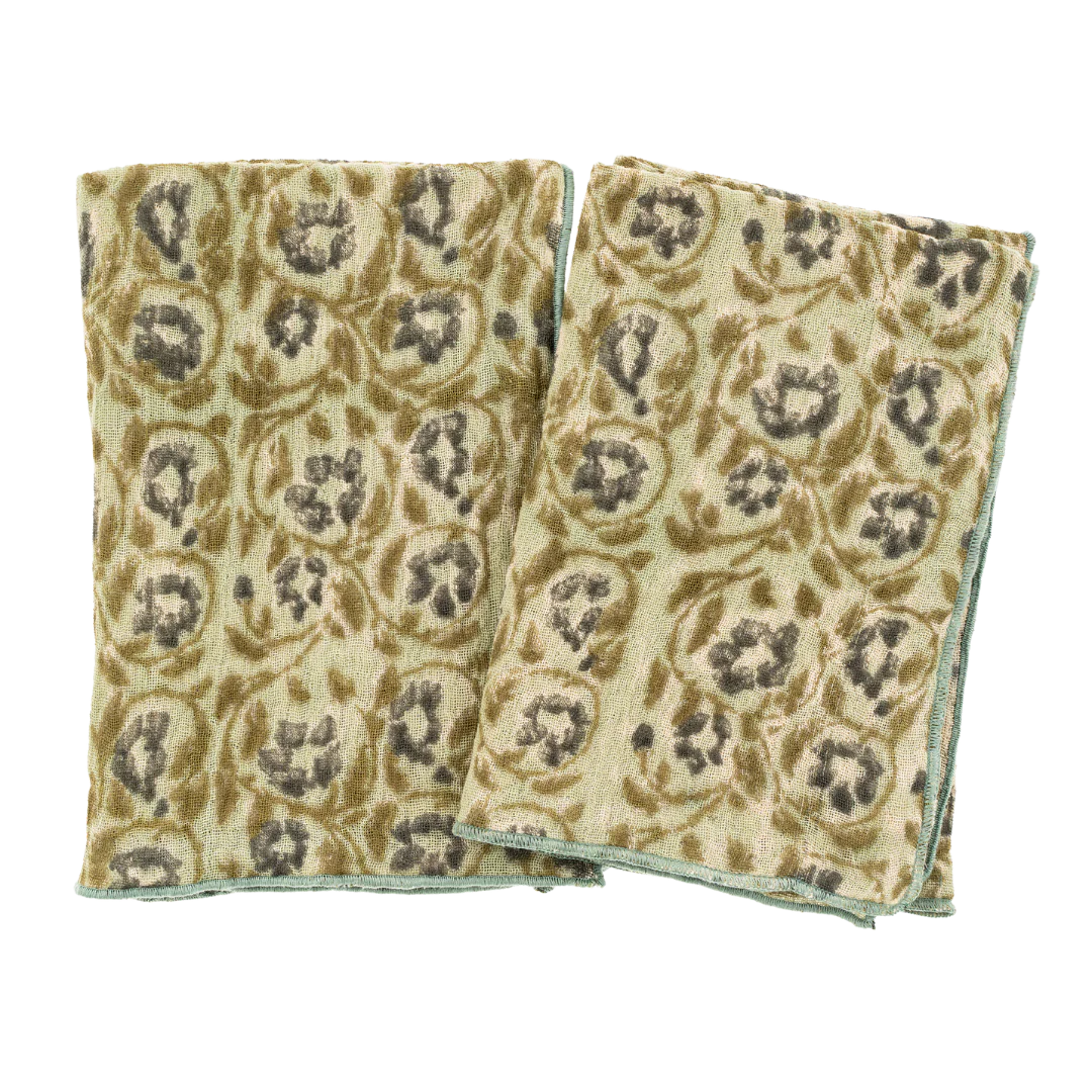 These block printed tea towels display creativity and craftsmanship in every detail. Handmade from double-gauze crinkle cotton with traditional block-printed pattern and over-lock embroidered edges, they infuse the kitchen with artisanal charm while providing practicality for everyday use. Machine Washable.