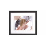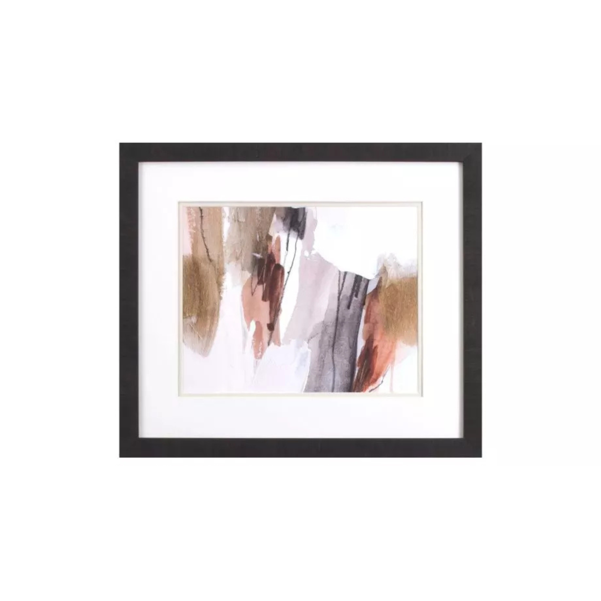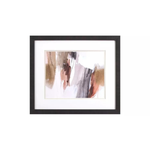 A set of two abstract brushstroke prints in brown and beige are double matted in white and oyster. Framed in a dark espresso wood finish moulding