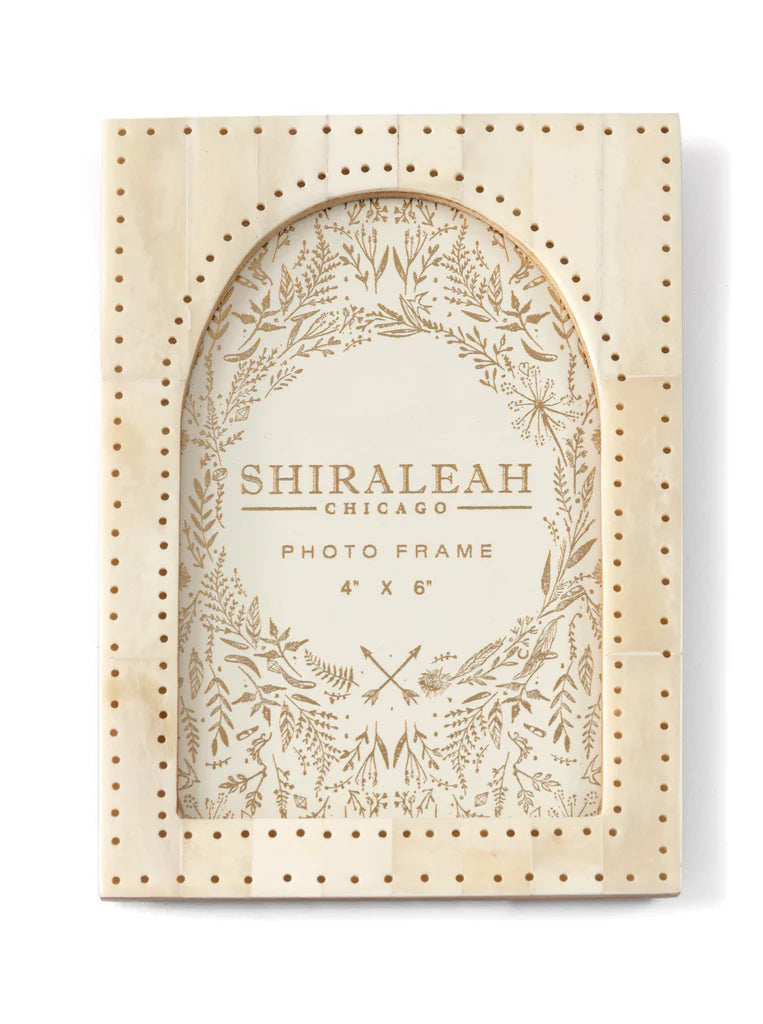 This frames natural colorway way allows it to blend seamlessly into your existing décor, while the ovular display space gives it a unique update. Constructed from bone, and featuring an easel back and intricate design features, the Ariston Vaulted 4x6 frame is the perfect home for your most cherished memories. Pair with other items from the Shiraleah home collection to complete your look!