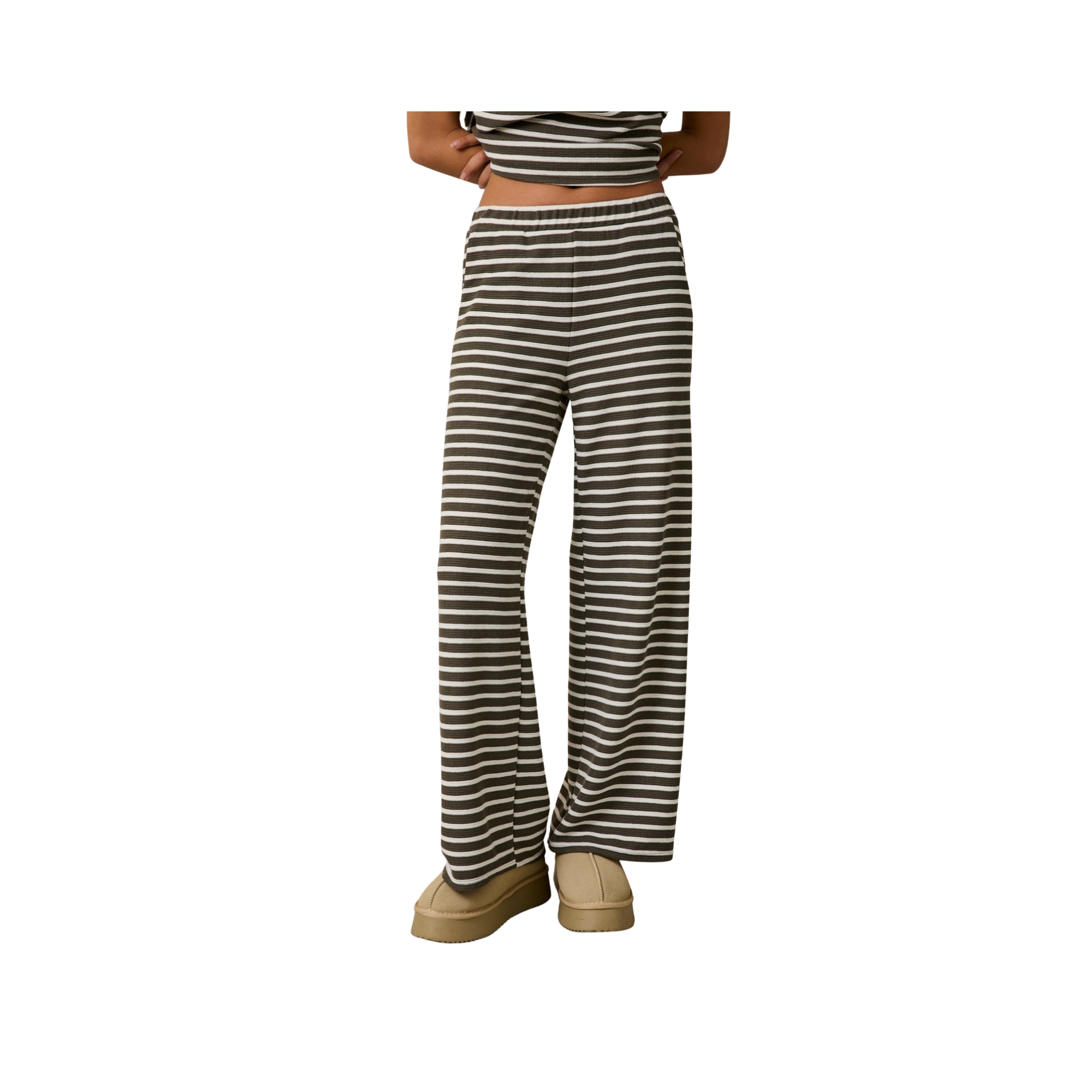 Elevate your wardrobe with this expertly crafted striped ensemble, featuring a sophisticated olive and cream palette that effortlessly transitions from day to evening. The harmonious color combination offers versatile styling possibilities while maintaining a refined, polished aesthetic.