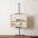 This sleek metal easel features a scalloped design and adjustable height mechanism, making it ideal for displaying artwork, signage, or decorative pieces. With compact dimensions of 7-1/4" wide by 4" deep, it fits seamlessly into any space while the 26" maximum height provides excellent visibility. The durable black finish complements modern and traditional décor alike, offering a professional presentation solution for galleries, studios, or retail environments.