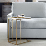 This perfectly sized accent table, with it's open design, will look great beside your favorite chair. The antique brass metal frame is topped with a beautiful piece of white Morwad honed marble. Natural gray veining is throughout, making each piece a little bit unique