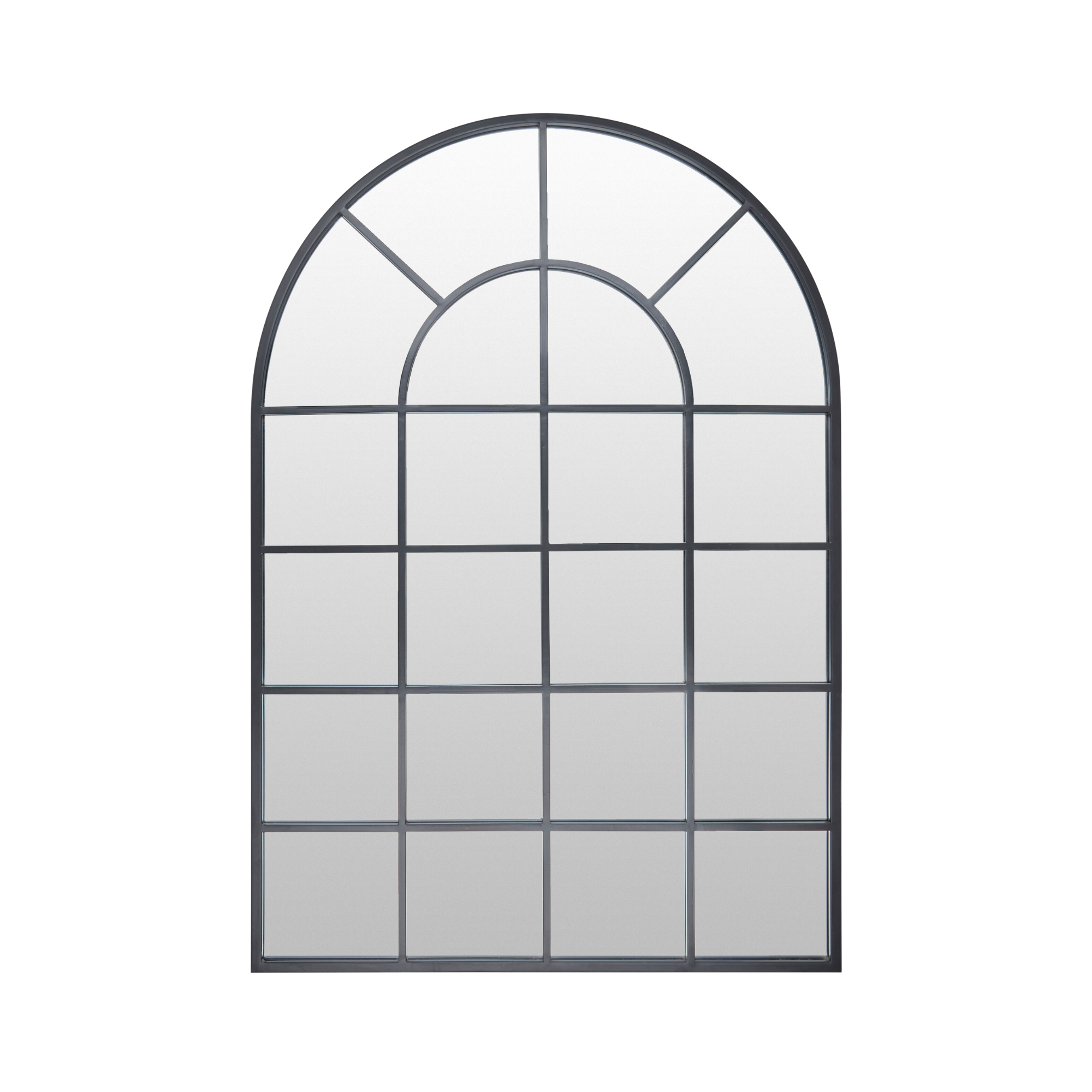 This striking arched mirror features a sophisticated metal frame with authentic window pane segmentation, creating architectural interest while reflecting light throughout your space. The geometric design adds contemporary elegance to any room, functioning as both a functional piece and a statement accent.