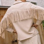 Crafted from faux suede, this jacket is accented with classic fringe embellishments.