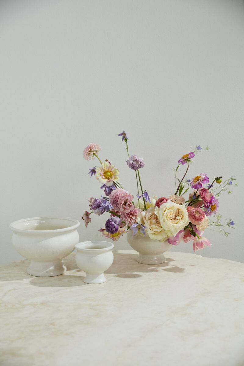 The modern ceramic Dawson Compote is the versatile piece you’ve been looking for to complement your home decor or your next event, an easy look for your most sweeping floral designs or your simplest potted plant, designed specifically with foam free floral designers in mind, the piece is versatile enough for every designer’s unique style.