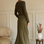 This sophisticated piece merges textural contrast through its fitted ribbed knit top and gracefully gathered woven skirt, delivering a polished silhouette with understated elegance. The mixed-fabric construction creates visual interest while maintaining a refined aesthetic ideal for elevated everyday wear.