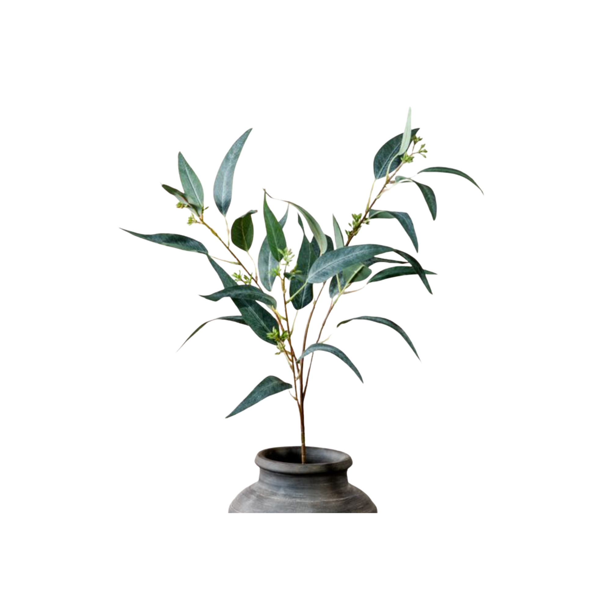 This 33-inch botanical stem showcases authentic eucalyptus fruit clusters, delivering natural texture and visual interest to floral arrangements, centerpieces, or decorative displays. The extended length provides versatility for both tall vases and mixed compositions, while the distinctive fruit elements add dimensional appeal and botanical authenticity to any design scheme.