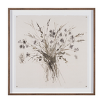 "Floral Impressions" by Melody Ducharme Is a captivating art print that elegantly captures the fluidity and grace of wildflowers swaying in a gentle breeze. This piece is meticulously hand-embellished, bringing depth and texture to the soft, earthy palette of muted browns and grays. Expertly framed and matted under glass, it draws inspiration from nature's tranquil beauty, making it an exquisite addition to any sophisticated space.