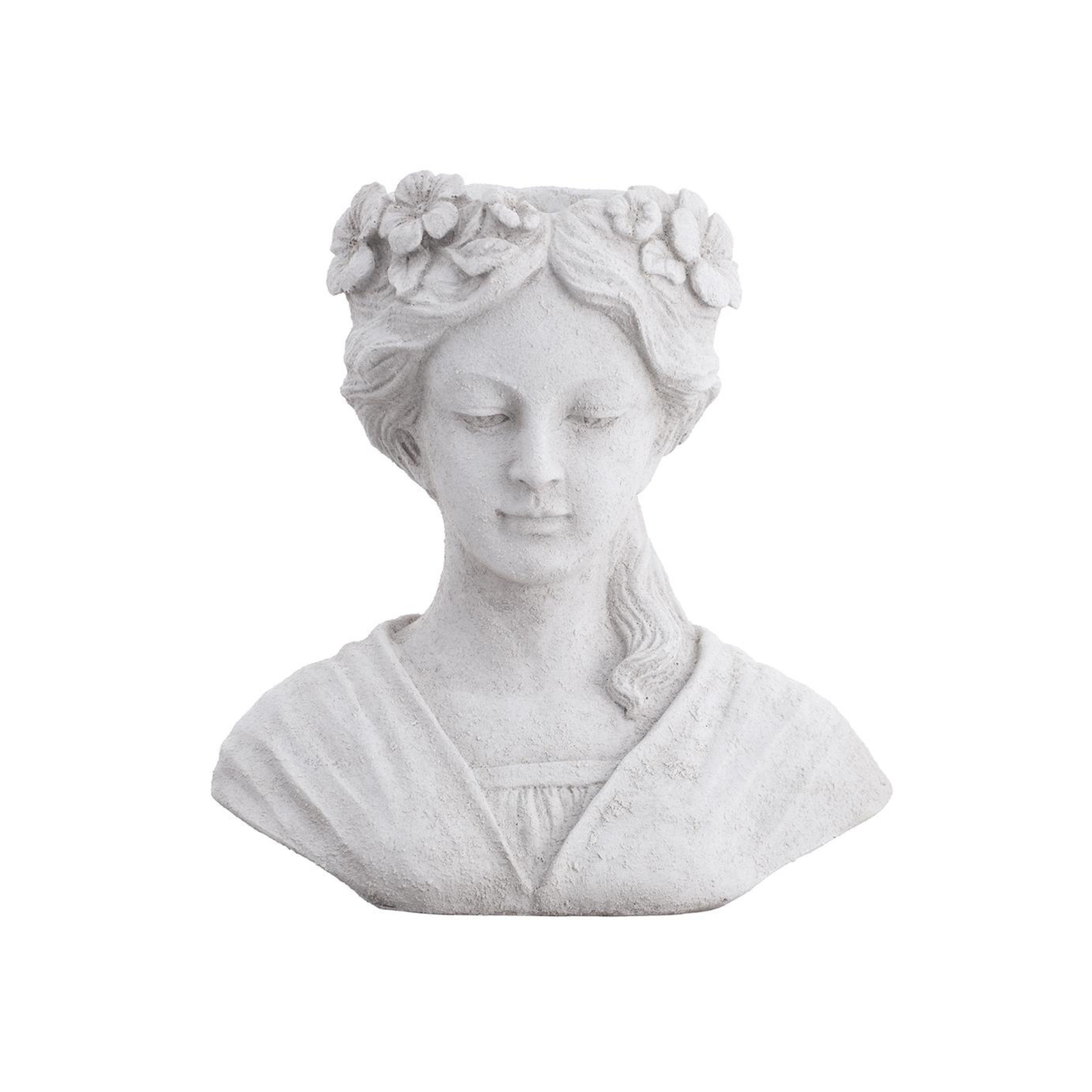 This charming 17.5-inch planter showcases an enchanting garden fairy design finished in a soft gray whitewashed aesthetic. Perfect for displaying your favorite plants while adding whimsical character to any garden or indoor space.
