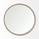 The Garrison is a 46" round mirror with a wooden frame to match its shape.