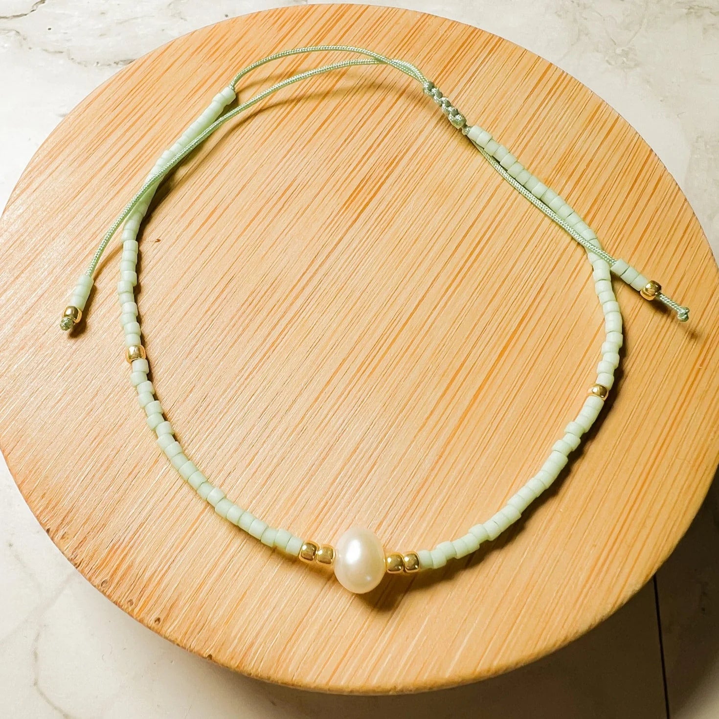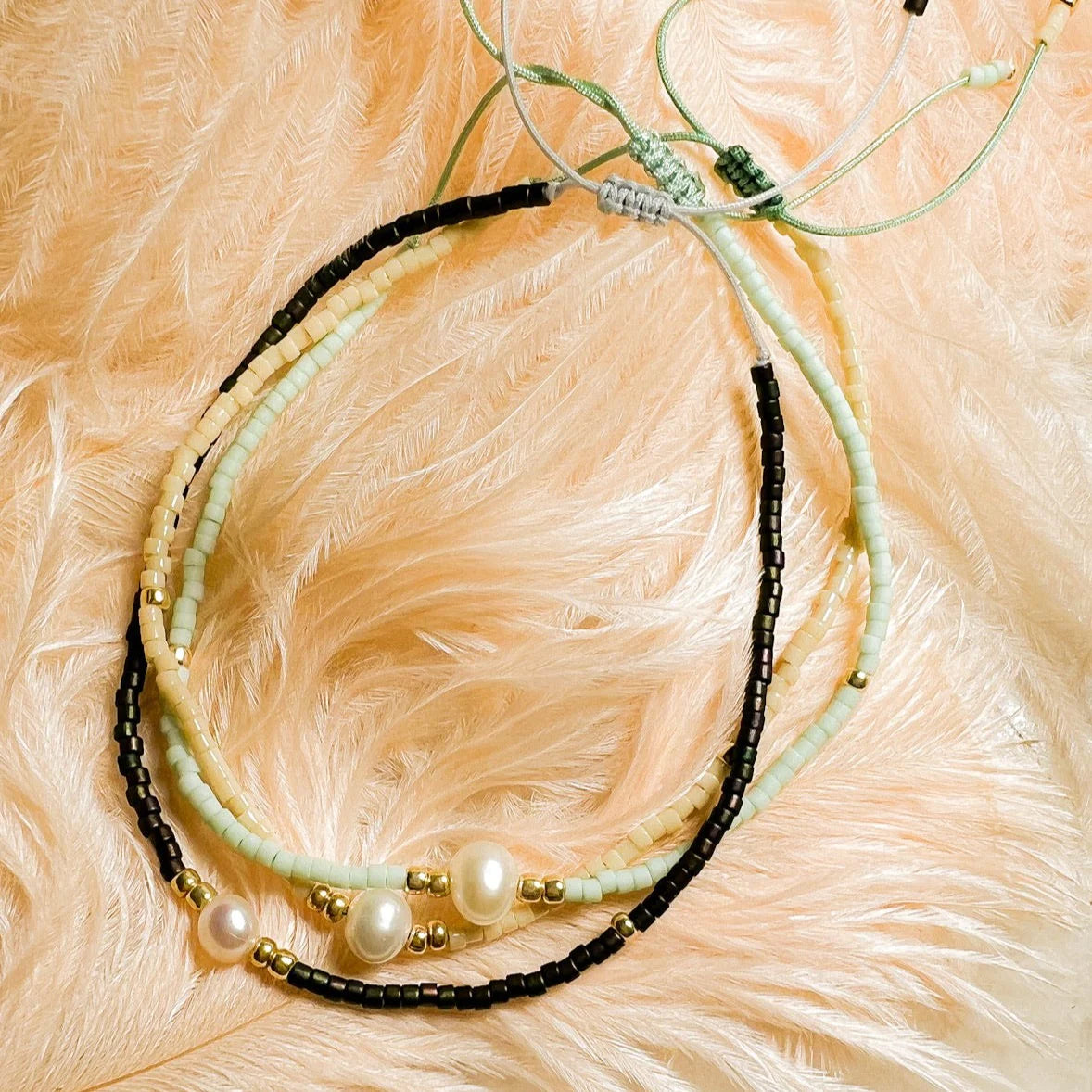 Since ancient times, pearls have been precious. The pearl meaning is centered around purity, balance, and inner wisdom. We've combined a solitare freshwater pearl with colored Miyuki beads. These tiny precious beads are made in Japan and known to be of the highest quality. The unique thread and knot at the back allows you to adjust the bracelet to any size and mix it into any stack.