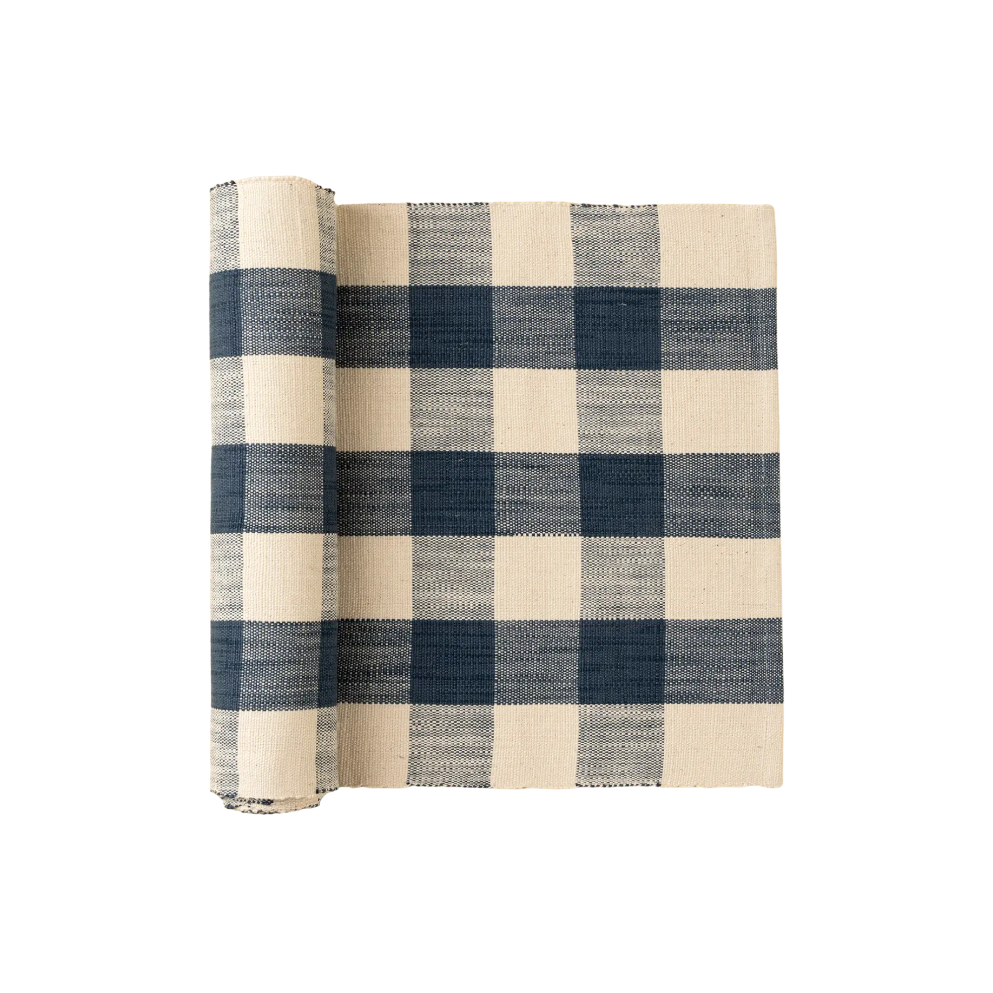 Lay the table with effortless elegance using the Grace Gingham Table Runner. Woven from 100% cotton and handcrafted in India, this extra-long runner brings a beachy, picnic-inspired vibe to your dining table. The soft gingham pattern in bold blues offers timeless appeal, perfect for summer tablescapes, casual gatherings, and coastal-inspired settings. At 108 inches, it's ideal for family-sized dining tables or outdoor feasts under the sun.