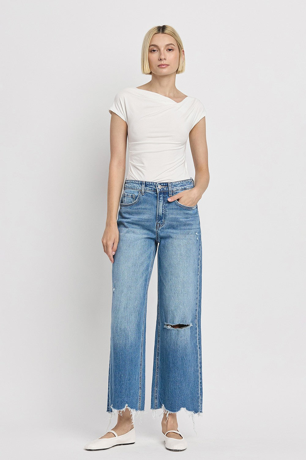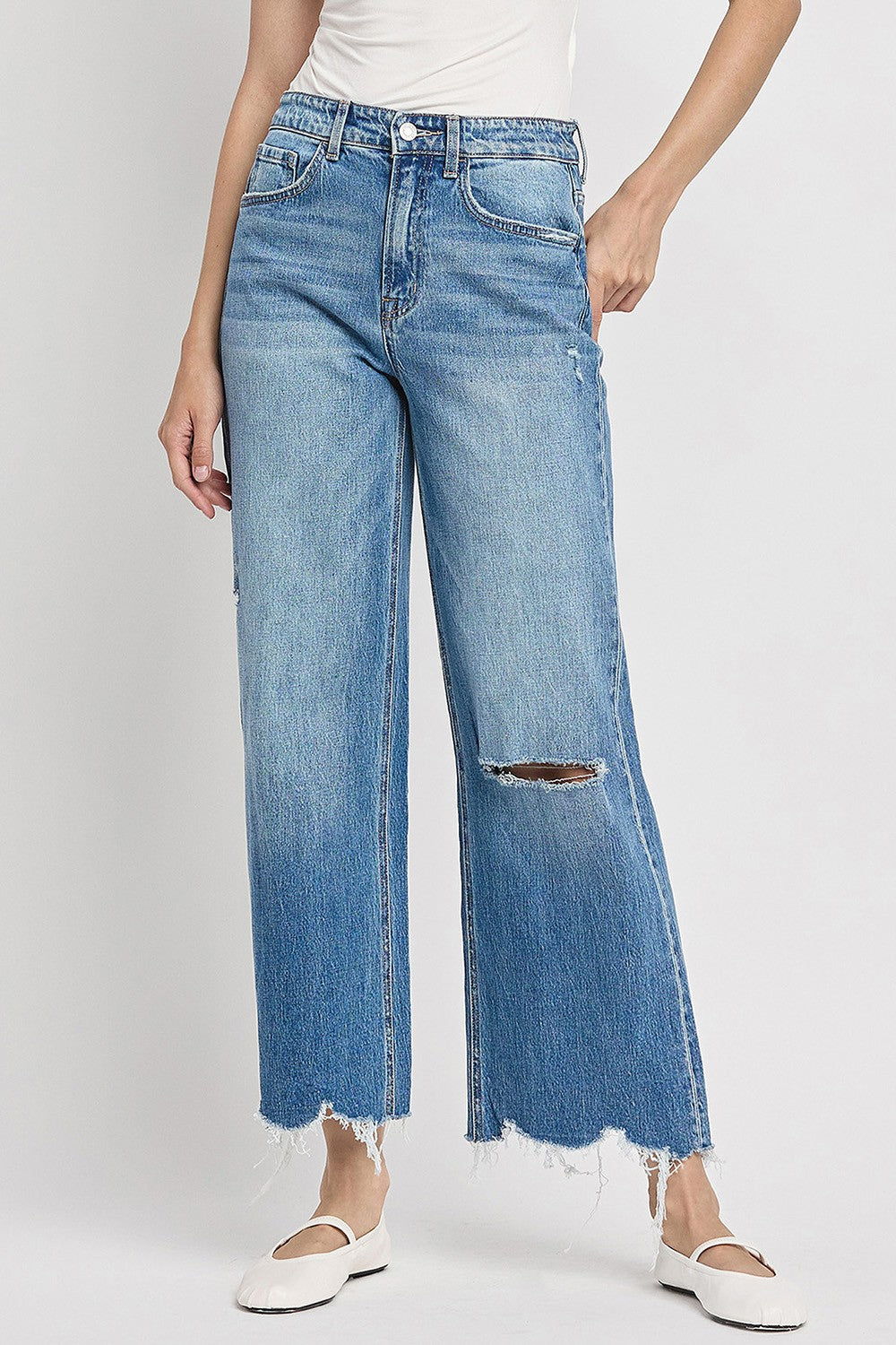 Crafted from a comfortable stretch denim, these Halson High Rise Jeans feature a high rise waist and a cropped length, with a distressed hem and a wide leg opening. With a front rise of 10 1/2 inches, an inseam of 27 inches, and a leg opening of 21 inches, these jeans are perfect for a stylish and modern look.