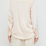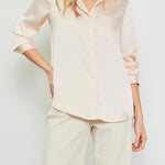 Elevate your wardrobe with this sophisticated satin button-down blouse, crafted for versatility and refined elegance. Featuring a relaxed silhouette with a classic collar and functional chest pocket, it transitions seamlessly from professional settings to casual occasions.