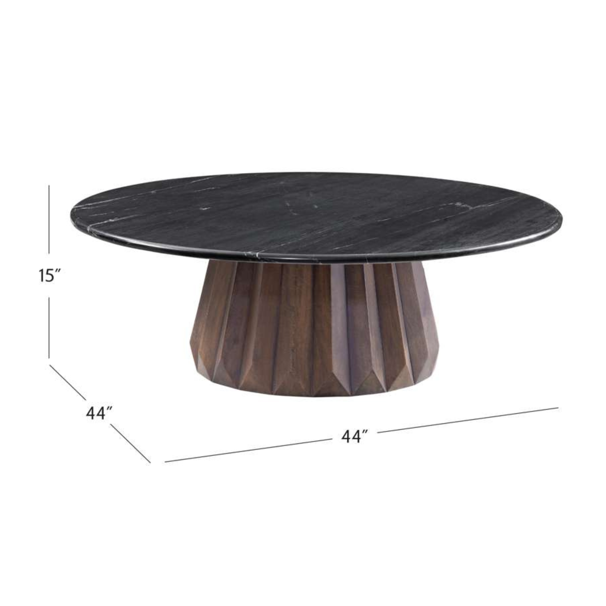 Crafted using a combination of modern design and traditional techniques, our Jeffery Cocktail Table is a perfect addition to any sophisticated living area. Its sleek marble top in polished black rests atop a solid wood base in rich royal brown mango, providing both durability and elegance. The table's unique geometric-inspired shaping adds a touch of character to any space.