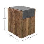 Crafted from authentic reclaimed pine with a natural finish, the Johnson Side Table showcases distinctive character through its one-of-a-kind grain patterns and weathered details. The honed black marble top provides elegant contrast while celebrating the material's inherent variations in veining and tone. As with all solid wood furnishings, expect subtle movement and minor surface irregularities as the wood responds to seasonal temperature and humidity shifts—hallmarks of genuine craftsmanship rather than flaws. This blend of rustic warmth and refined aesthetics makes it a compelling accent piece for discerning interiors.
