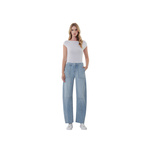 These high-rise barrel jeans deliver contemporary style with a cropped silhouette and distinctive striped detailing. Crafted from comfort stretch denim, they feature a flattering high-rise waist, functional patch pockets, and an edgy raw hem finish. The relaxed barrel leg offers a modern take on classic denim, making these jeans versatile enough for casual wear or dressed-up occasions. Perfect for those seeking quality construction with on-trend design elements.