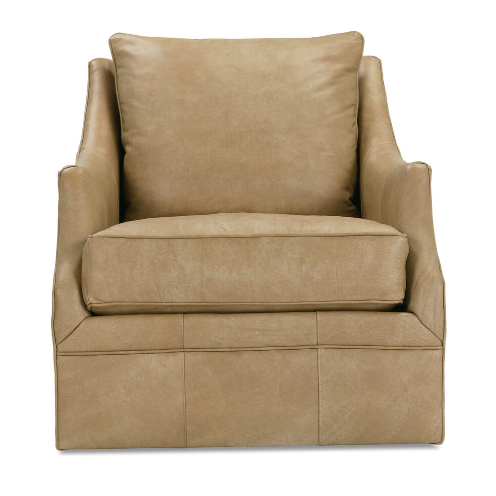 The Kara Swivel Glider offers a luxe seating option in a transitional style. Featuring slightly flared arms and the classic feel of leather, Kara is destined to become a modern classic. Fine Brahman hides are first aniline-dyed then lightly buffed by hand, allowing the leather’s natural texture to shine through. Our innovative KidProof finish is applied to provide protection for long-lasting beauty.