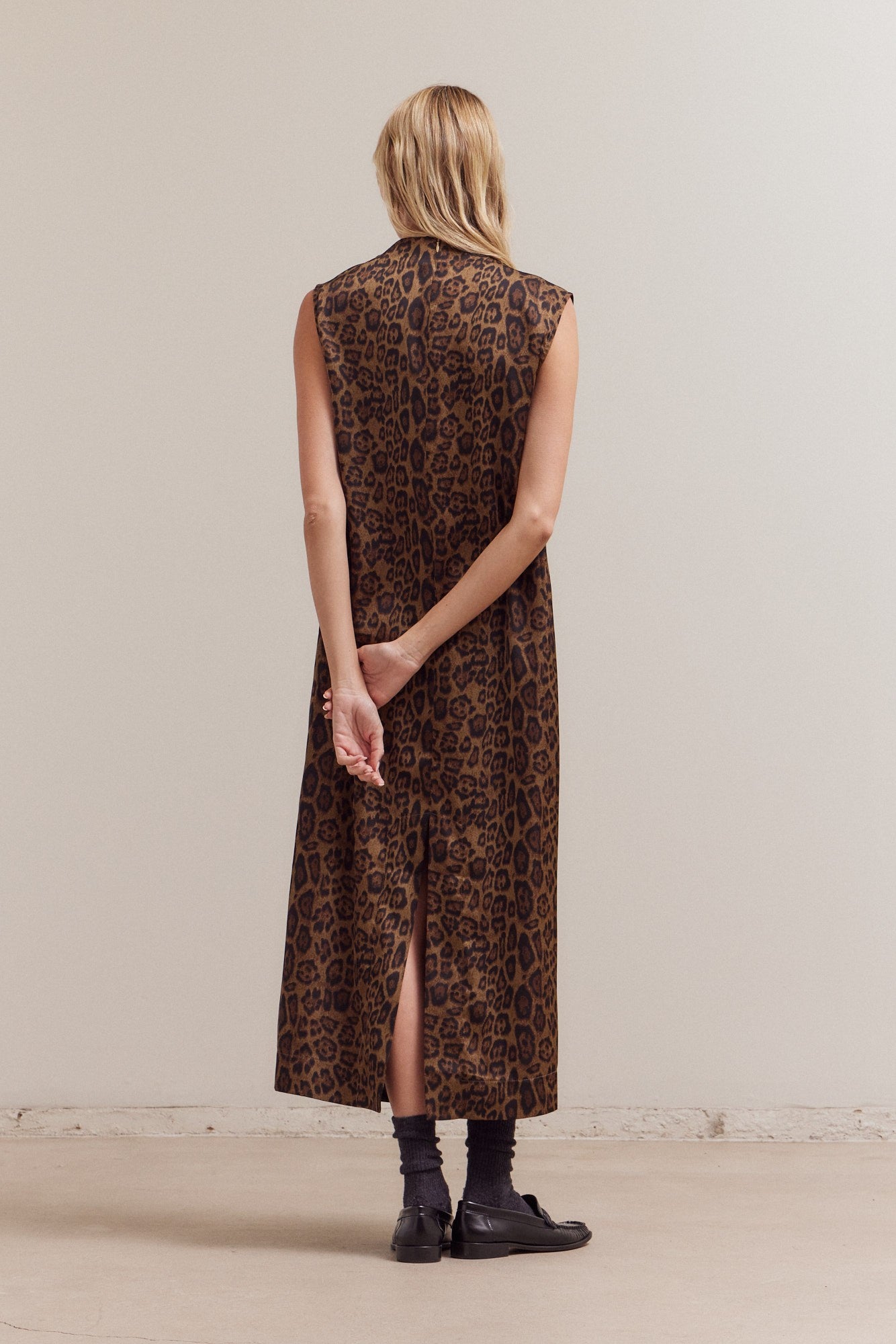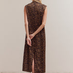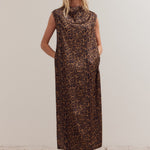 Sophisticated leopard print maxi dress featuring a refined mock neck silhouette. This timeless piece combines bold animal patterning with elegant proportions, offering a versatile option for elevated everyday wear or special occasions. The mock neck adds a polished touch while the flowing maxi length provides graceful movement and flattering coverage.