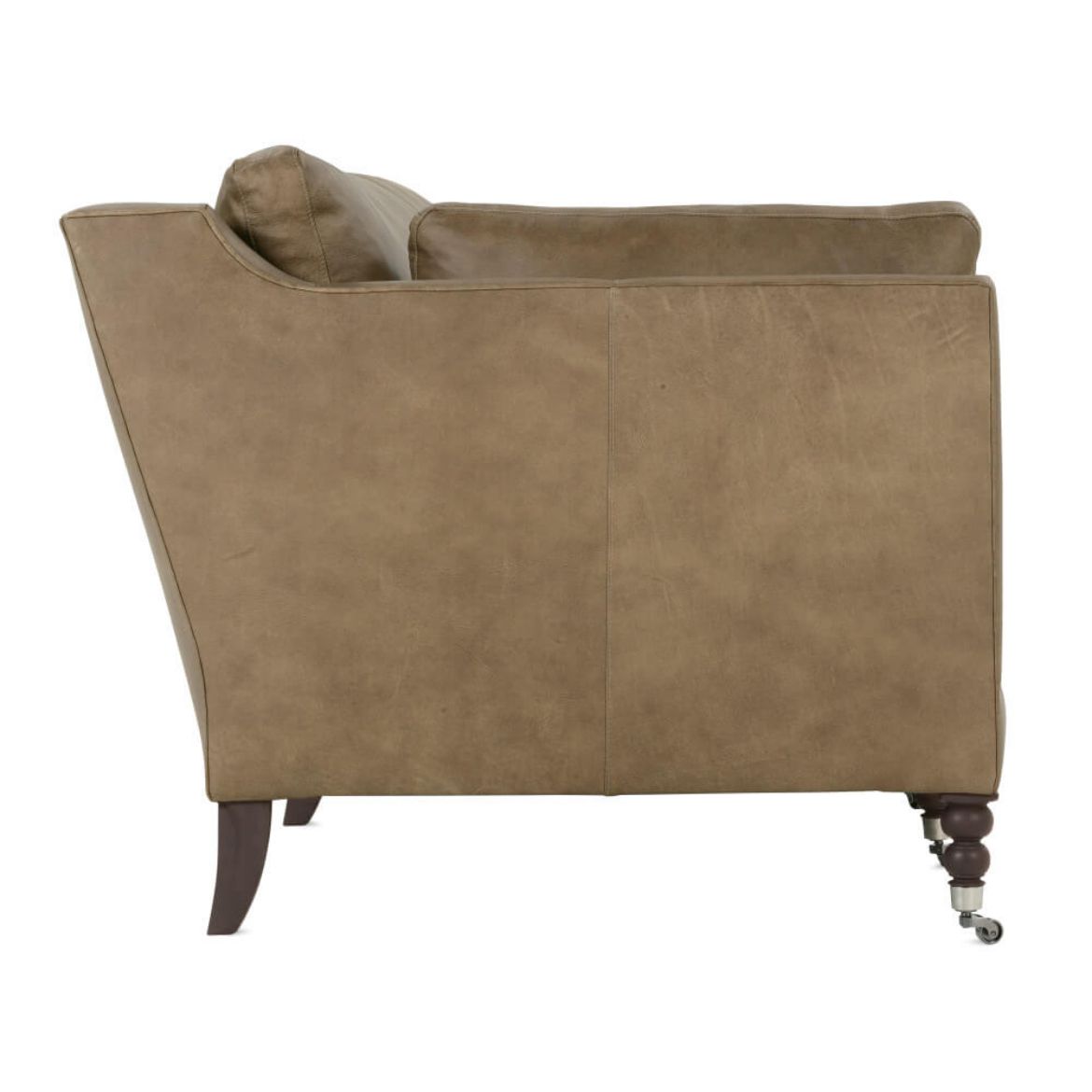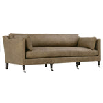The Madeline Leather Sofa is designed for comfort, with transitional, elegant styling. Features include top-quality Athena leather and stylish spool legs with pewter casters.