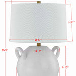 The Maisy Lamp exudes timeless charm with its antique milk jug-inspired silhouette and looped decorative handles, all crafted from ceramic. The natural, white tones are complemented by a white drum shade and gold hardware, blending classic elegance with a modern update. Maisy adds a refined, feminine touch to any space, ensuring enduring style.