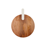 This versatile serving board combines the warmth of sustainably sourced mango wood with refined marble accents. Available in two functional sizes—a 14-inch circular design ideal for cheese and charcuterie presentations, or a 9x24-inch rectangular format suited for appetizers and baked goods—each board showcases the wood's distinctive natural grain patterns. The integrated marble handle provides both practical grip and visual sophistication, elevating the piece from functional kitchenware to an elegant table statement. The contrasting materials create a curated aesthetic that complements contemporary and traditional table settings alike.