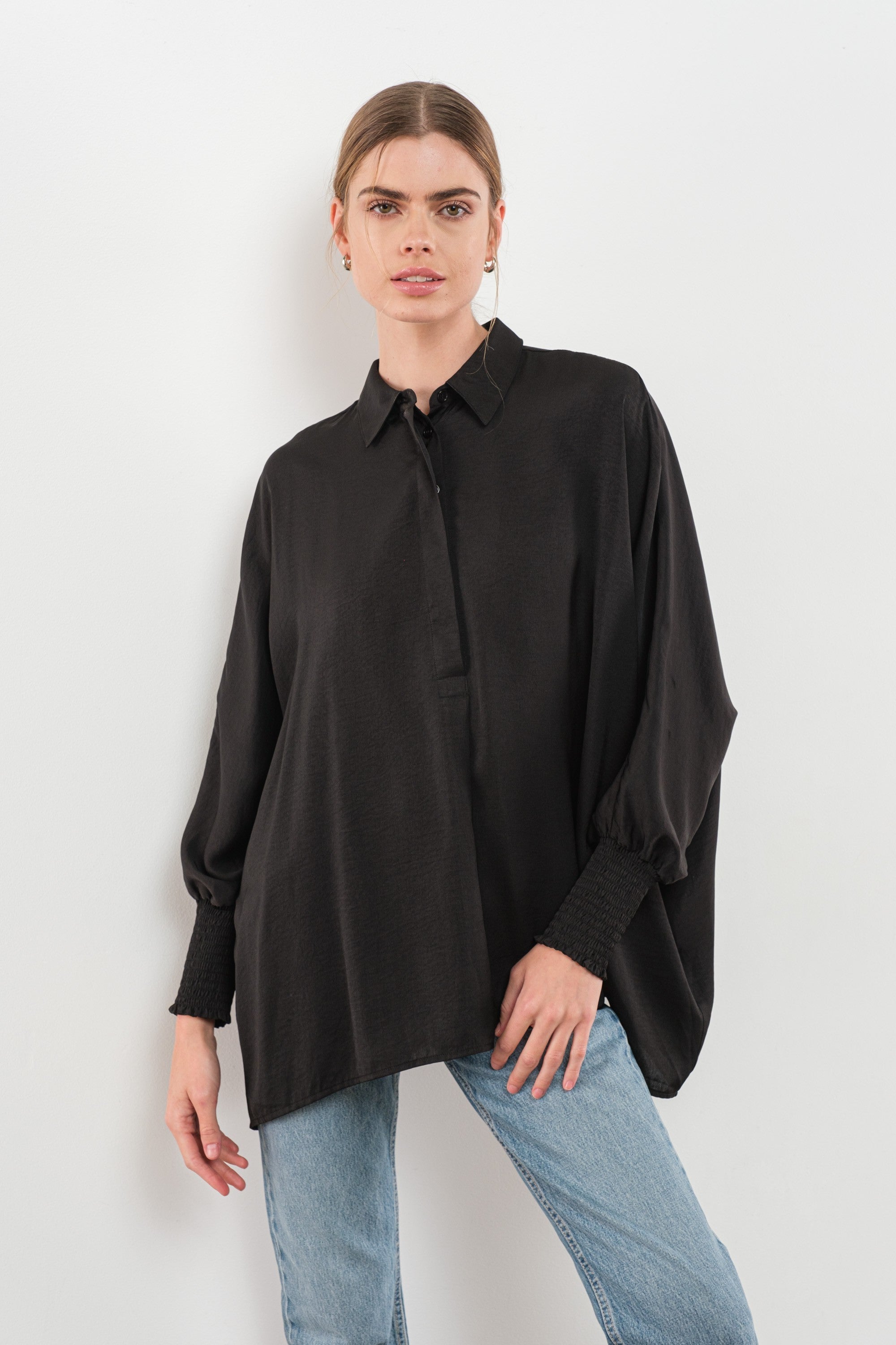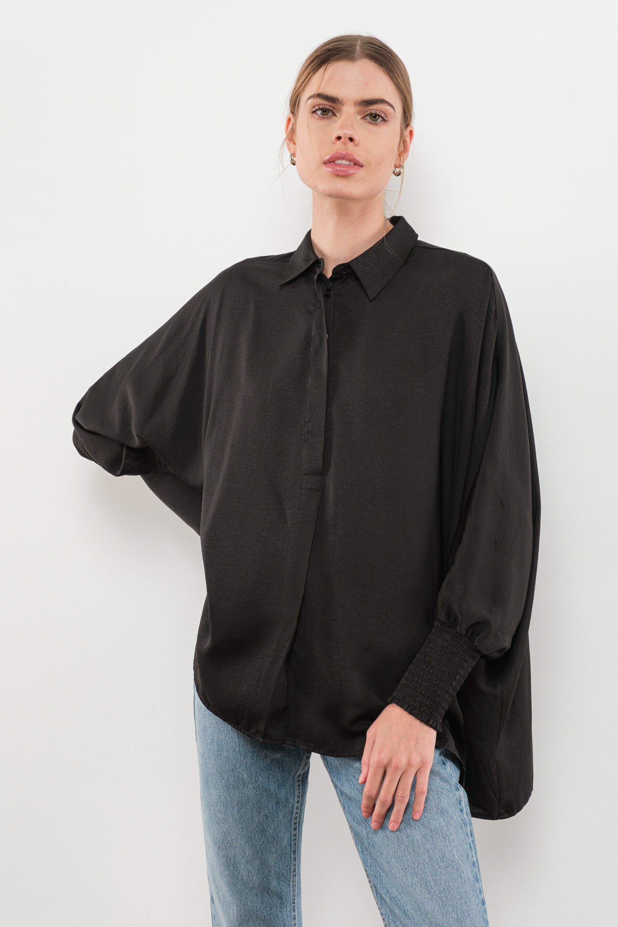 Satin smock sleeve top