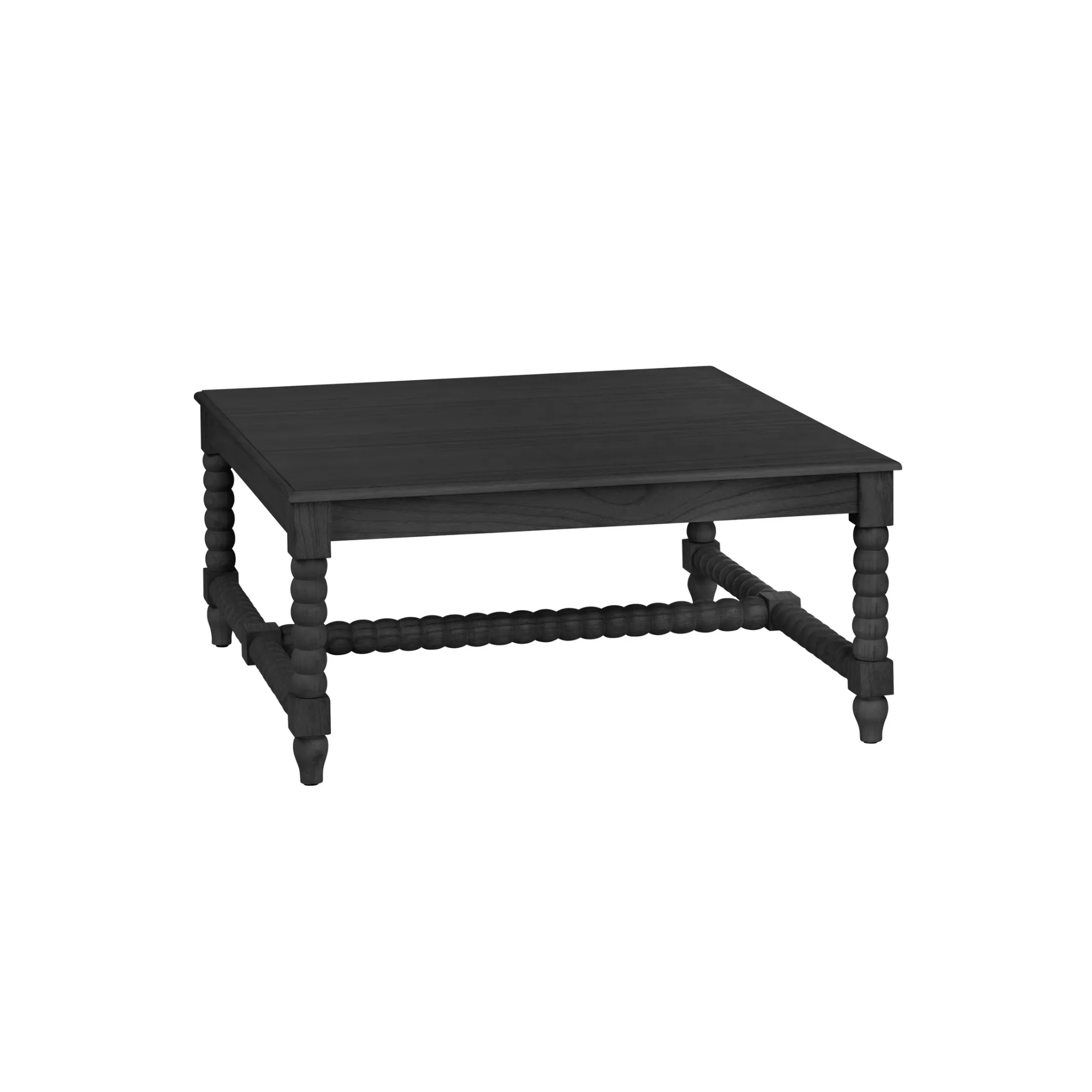 This four-post design showcases a stacked, craftsman style construction that adds a decoratively classic aesthetic to the overall table. The painted black finish accentuates its curved nature while bestowing a layer of drama that commands attention. Allow the craftsmanship of this eye-catching, cocktail table to be the next conversation piece in your home.