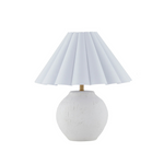 Experience effortless style with the Maxine Table Lamp. Its refined design can complement a variety of styles while the textured, round base adds subtle dimension. The golden hardware adds a touch of elegance to any space and the charming white scalloped empire shade softens the look for a perfect balance of classic and contemporary. At a height of 19.5 inches, this lamp is both functional and beautifully curated.