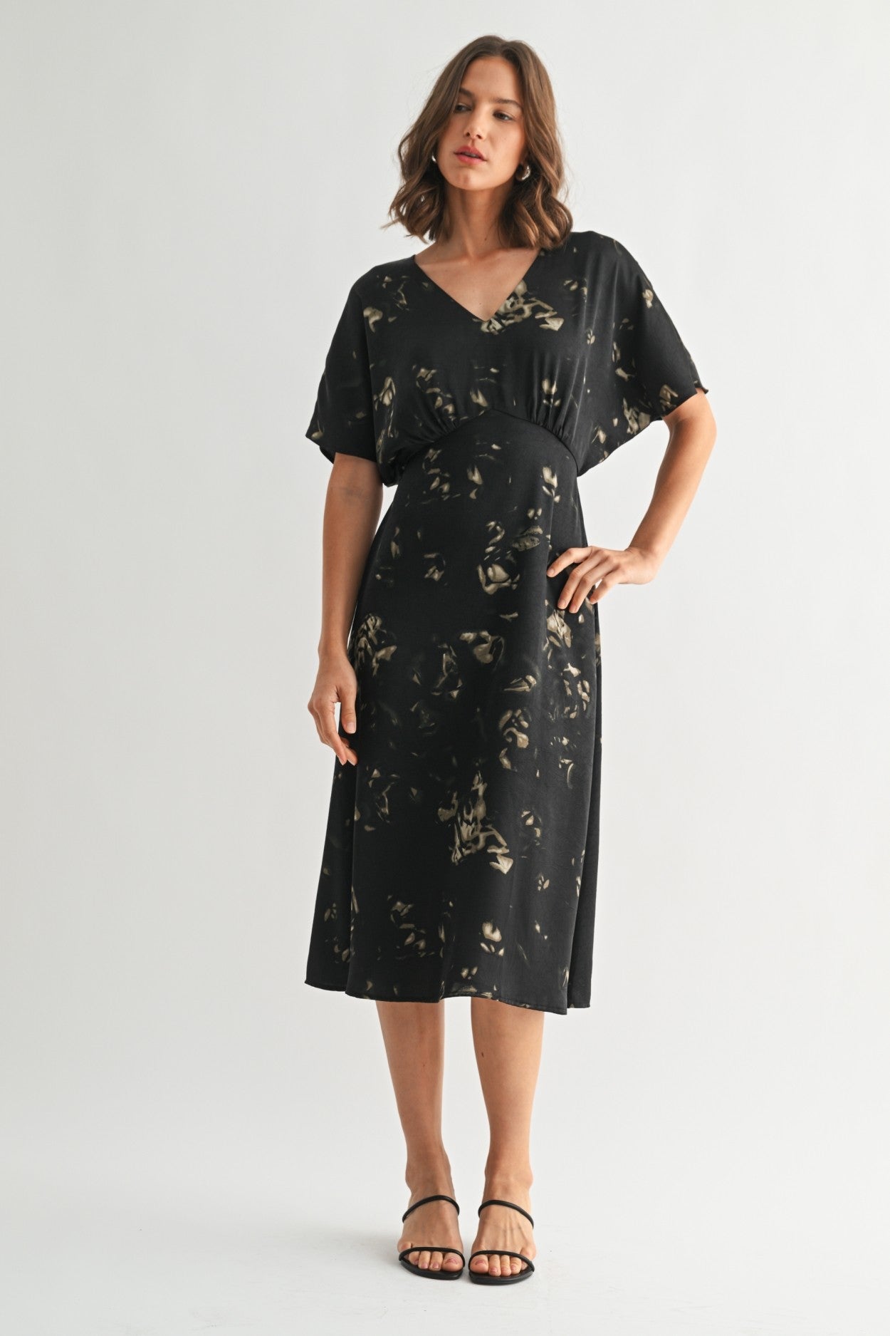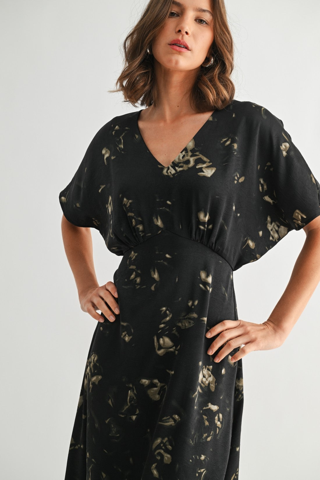 ABSTRACT PRINT V NECK MIDI DRESS