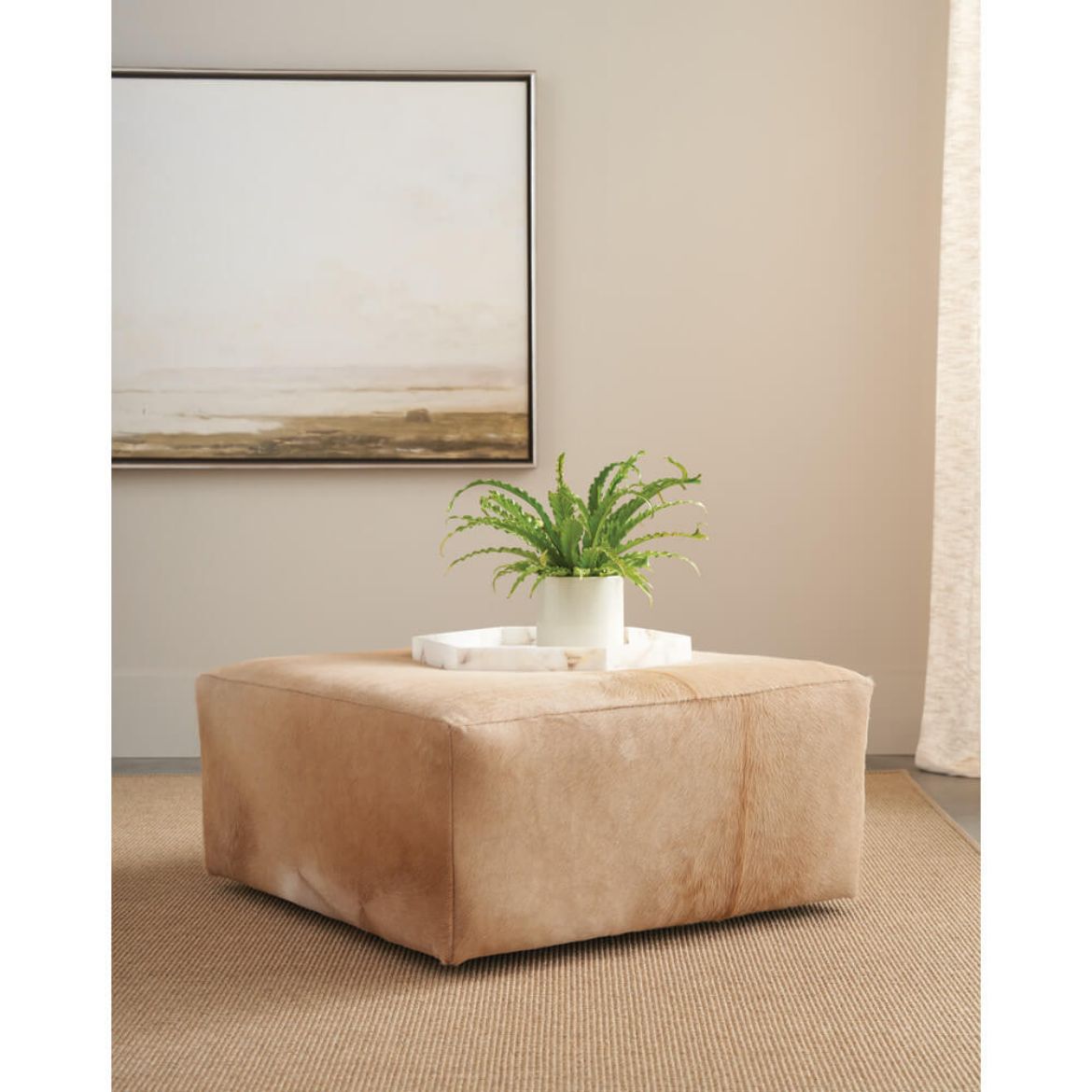 Upholstered in a striking hair-on-hide leather, our Miles ottoman is designed to stand out. Each hide is unique, with natural variations in color and length and brand marks that add distinct character and texture. Hide is naturally resistant to stains and fading, ensuring the longevity of its beauty.