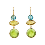 Brighten your look with the Blue Topaz, Citrine & Peridot Multicolor Gem Earrings. These vibrant earrings feature a trio of gemstones—blue topaz, citrine, and peridot—set in a chic design. The combination of the colorful gems creates a lively and eye-catching accessory, perfect for adding a pop of color to any outfit.