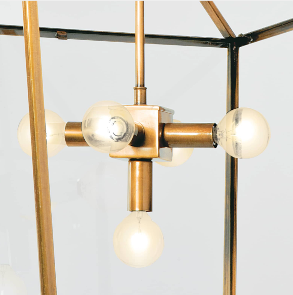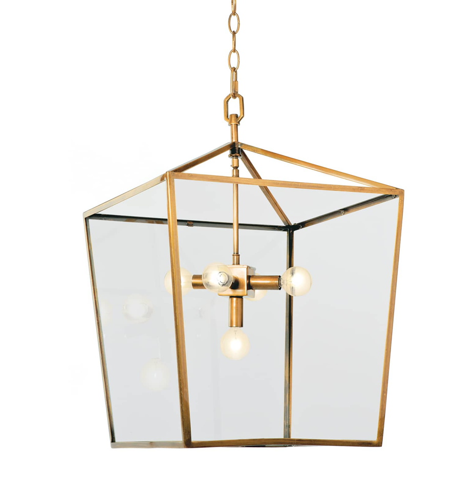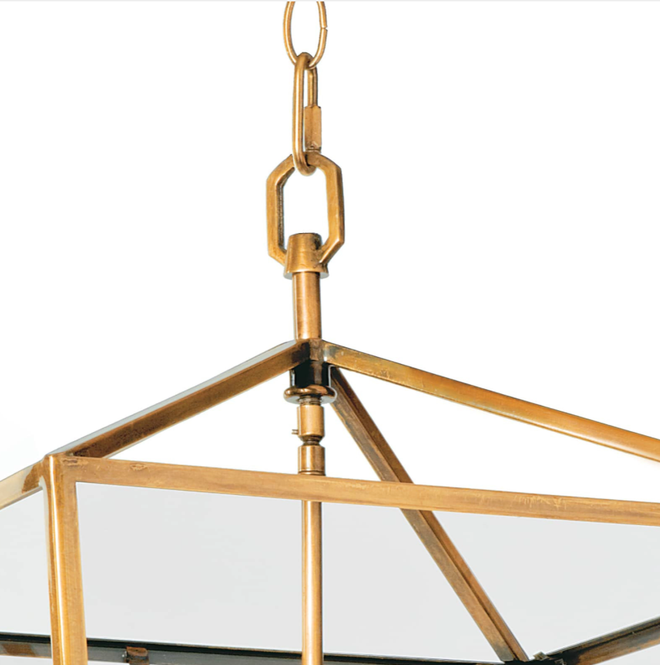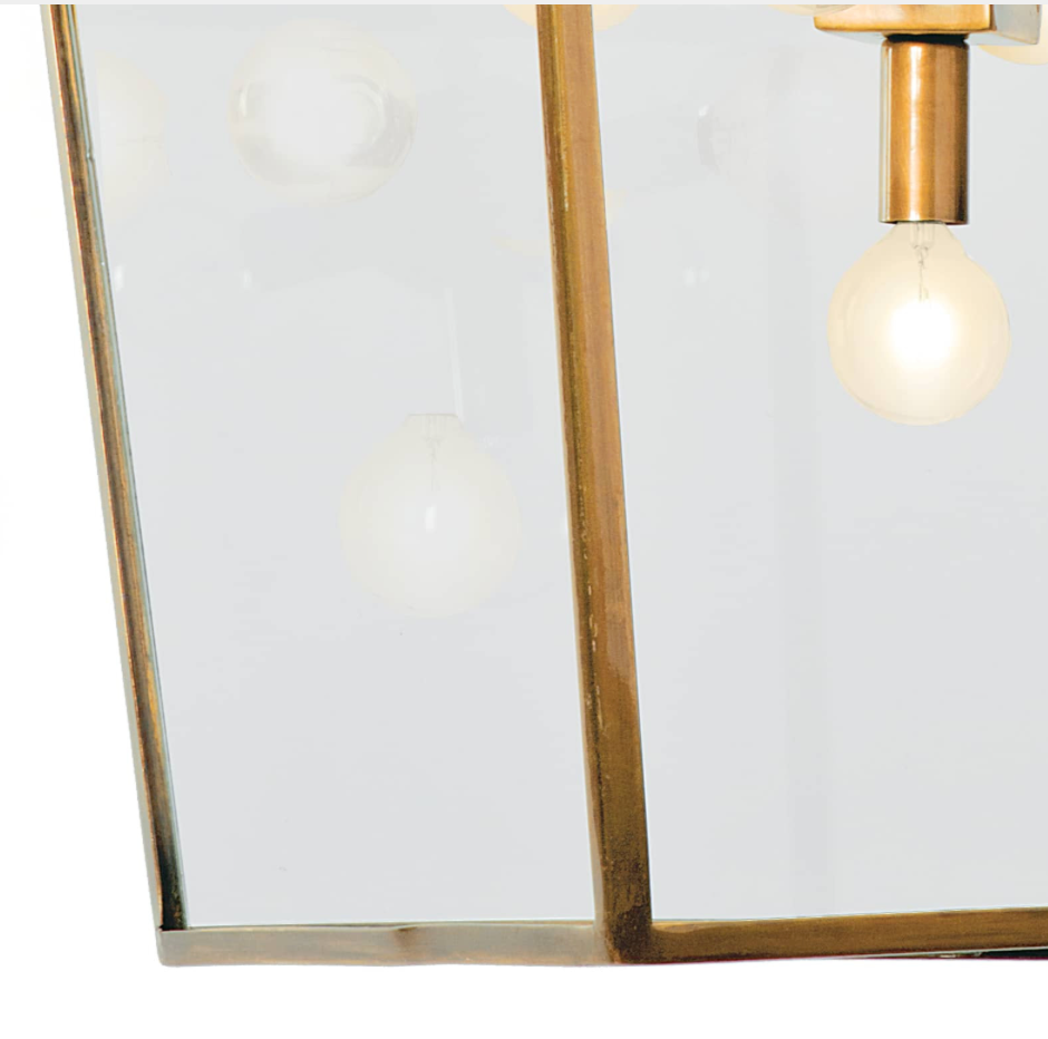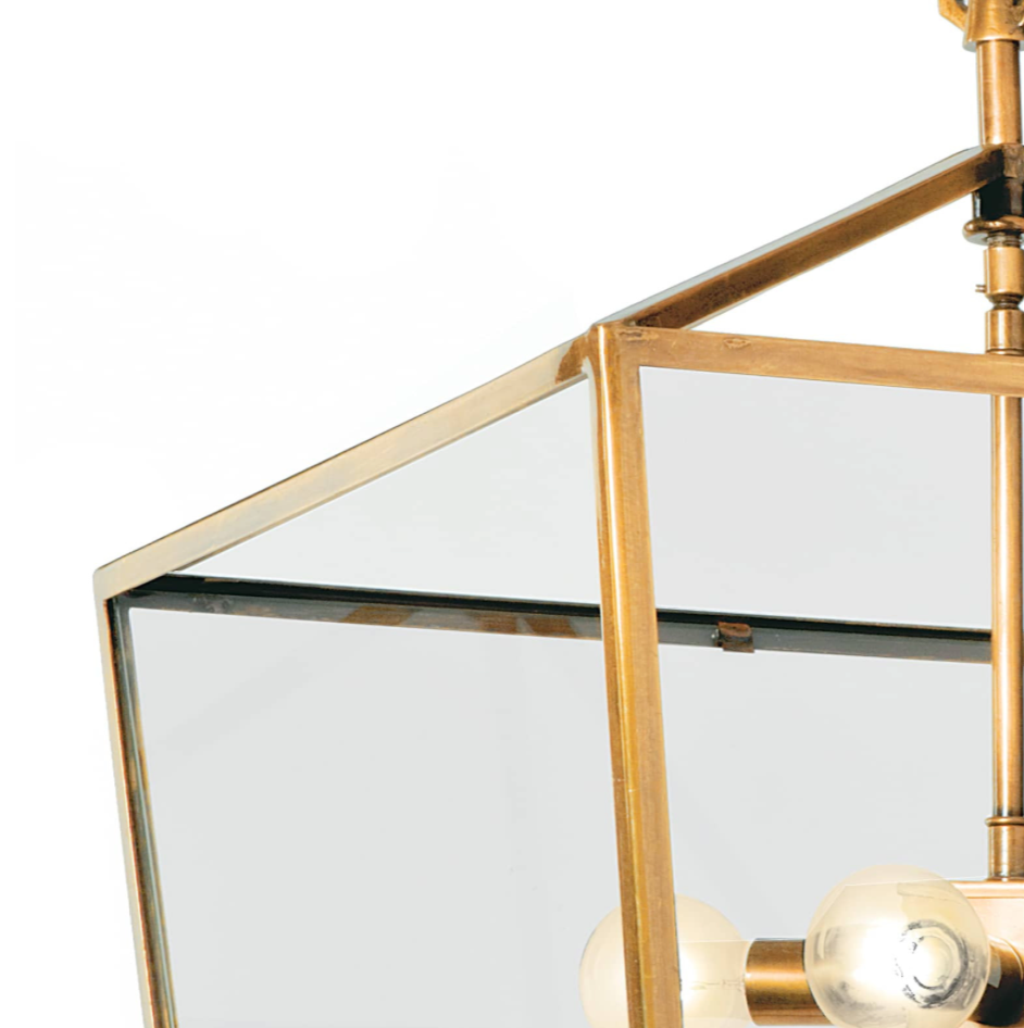 Timeless elegance with a lantern that is radiating refined. This clean-lined lantern is crafted of steel with a natural brass finish and clear glass panels brings depth and structure to any space.