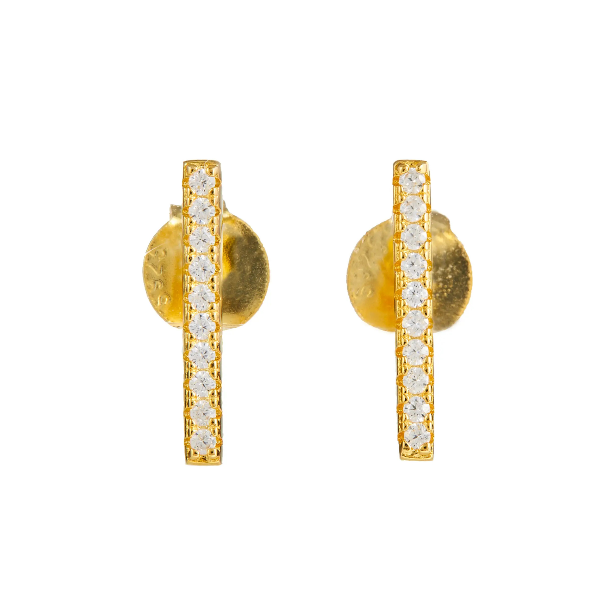 Add a touch of modern elegance to your jewelry collection with our Pavé CZ Bar Earrings. These sleek and stylish earrings feature a streamlined bar design, adorned with meticulously set pavé cubic zirconia that shimmer with every movement. The sparkling CZ stones create a continuous, radiant effect, adding a sophisticated touch to the minimalist bar shape.