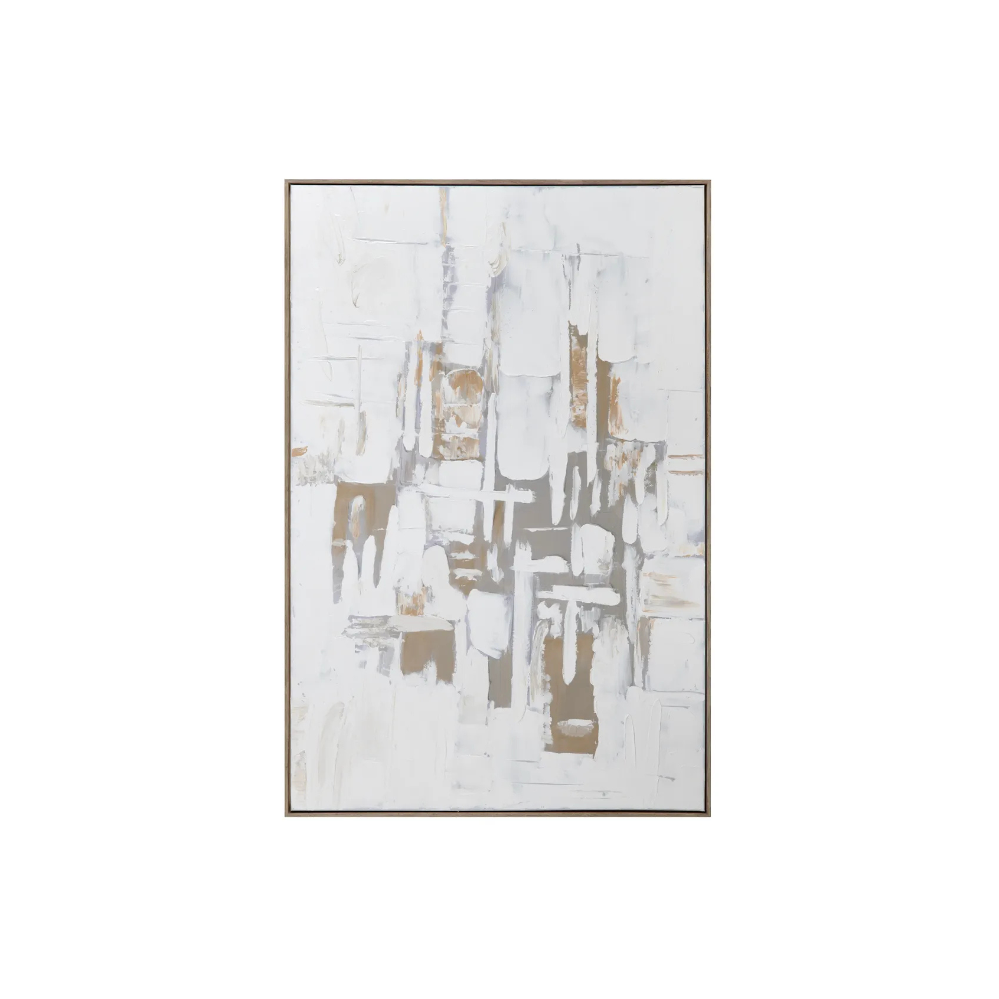This grand canvas features an abstract composition of white, soft taupe, and gentle gray brushstrokes that breathes sophistication and elegance. The muted palette, though understated, radiates an undeniable warmth, inviting you to pause, reflect, and feel at home.