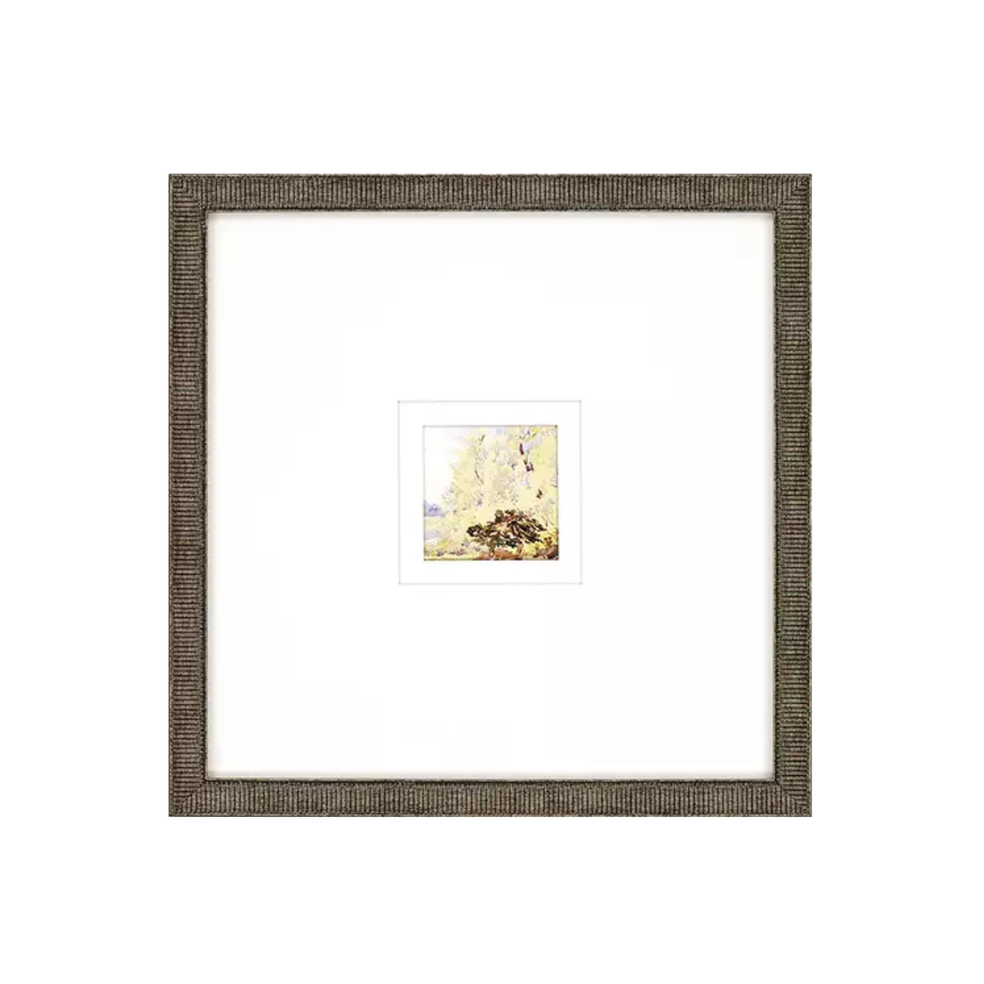 Vibrant woodland imagery presented with dual white matting, then housed within a textured ribbed frame finished in weathered antique gold. This layered framing approach creates dimensional depth while the distressed gold moulding adds timeless character to any space.