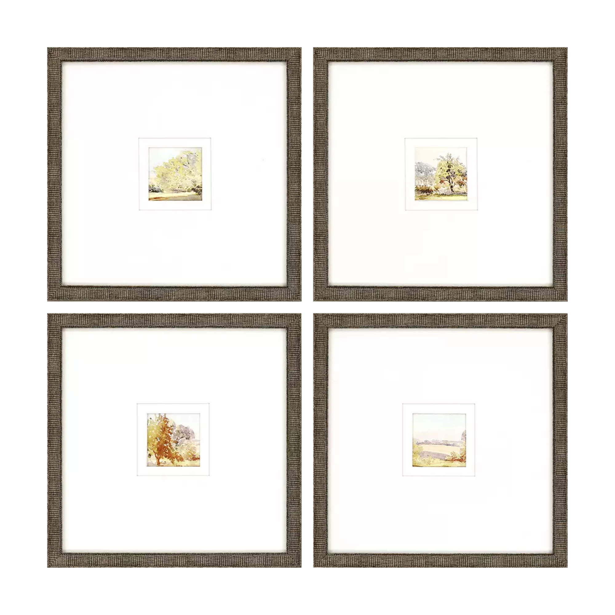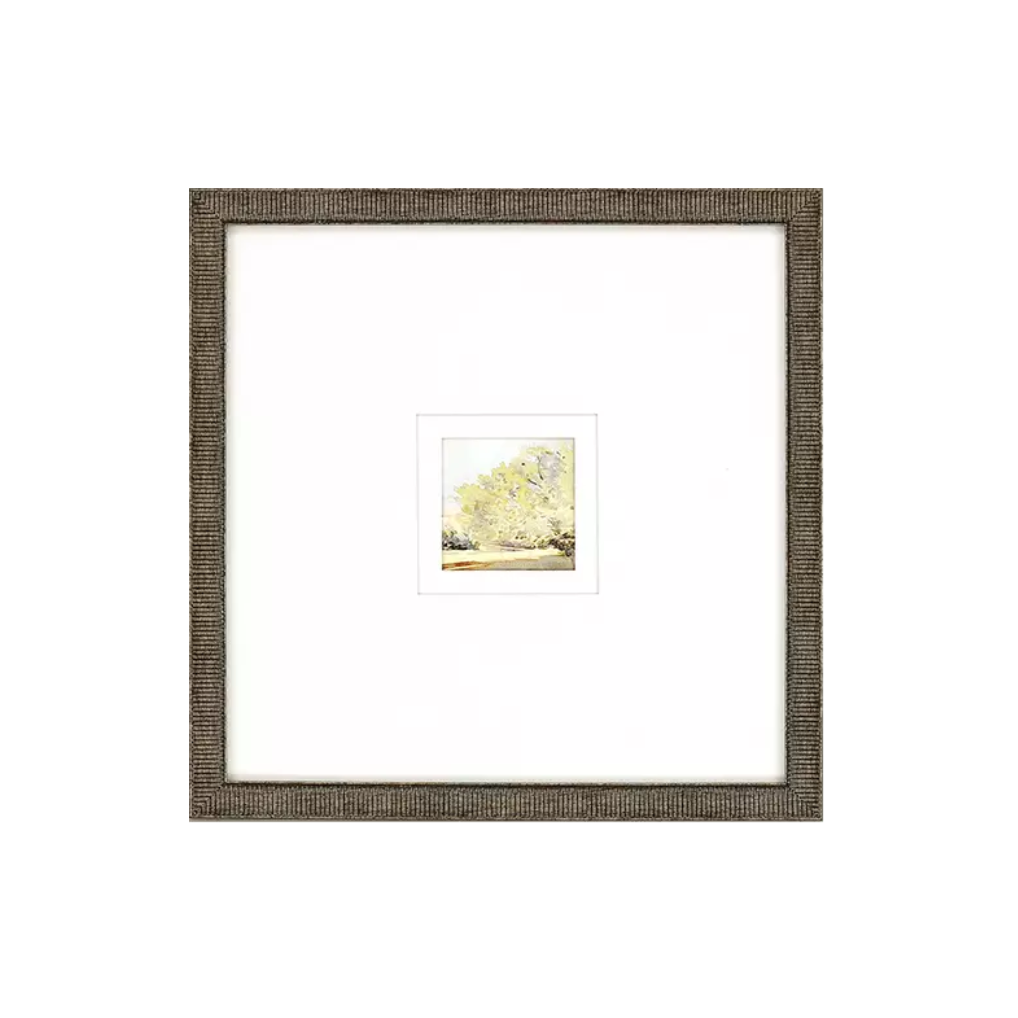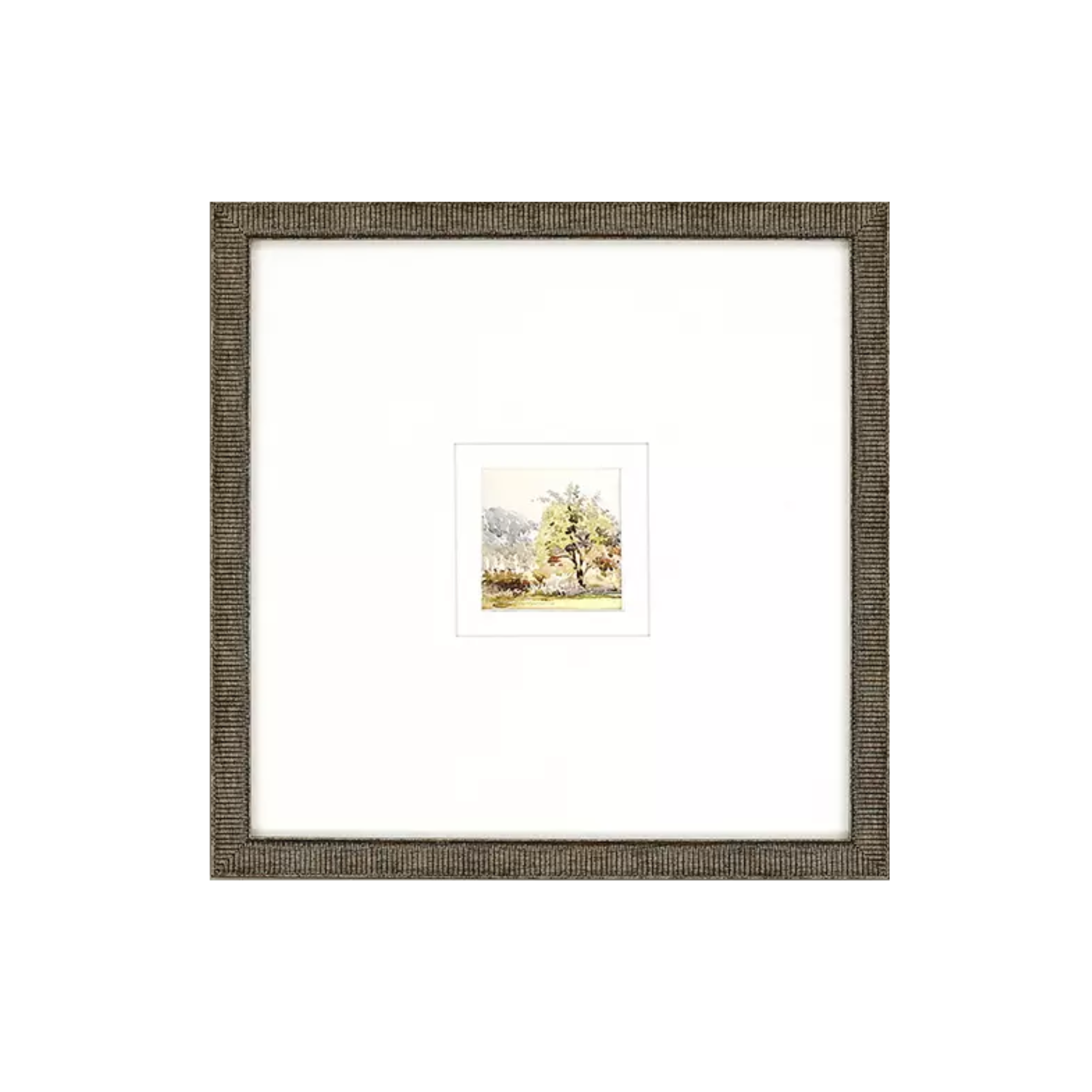 Lush woodland vistas rendered in rich color tones are enhanced by layered white matting that amplifies visual dimension. Housed within a textured ribbed frame featuring an antiqued gold patina, this piece delivers understated sophistication and enduring aesthetic appeal.