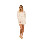 This delicate crop blouse showcases intricate embroidered lace with an openwork design that balances sophistication with effortless charm. The V-neckline and button-front closure provide flattering structure, while voluminous balloon sleeves and refined scalloped trim create visual interest. Crafted from lightweight, breathable fabric, it's ideal for warm climates and transitional seasons. The relaxed yet polished silhouette works beautifully for resort wear, garden events, or casual-elegant occasions. Coordinate with the coordinating lace shorts to complete the collection.