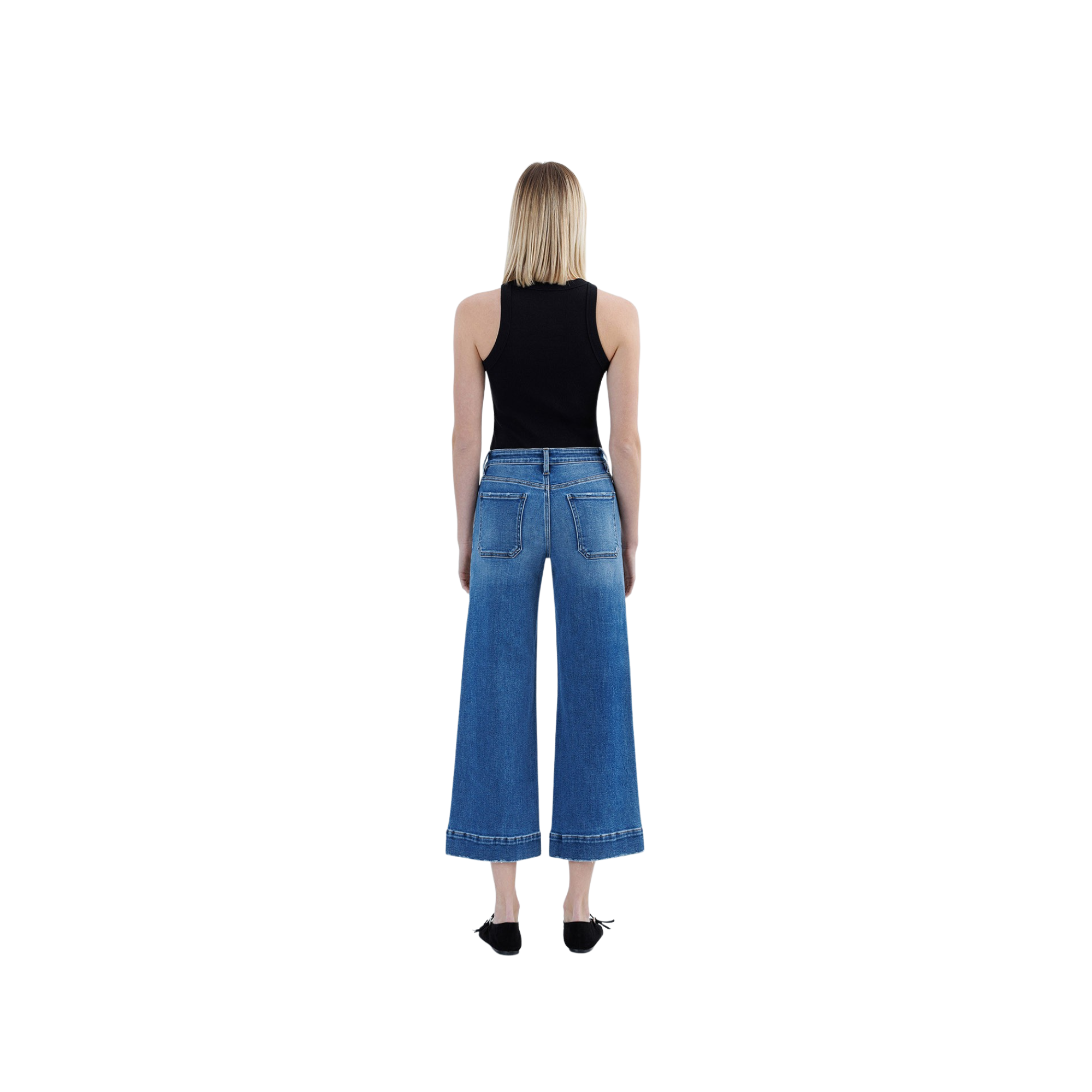 Crafted from comfort stretch denim, these high-rise utility jeans deliver both style and wearability. The wide-leg silhouette pairs with a cropped length for a contemporary proportion, while utility pocket detailing adds functional appeal. A trouser hem finish elevates the overall aesthetic, making these jeans versatile enough for elevated casual wear or dressed-up occasions.
