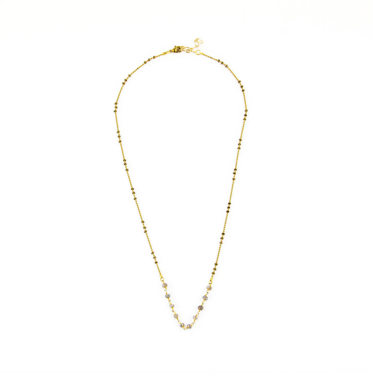 A classic necklace style for versatility and effortless style. The Eleanor combines our wire wrapped gemstone chain and signature textured brass chain. There are 6 gemstones to choose from, each creating a different gentle aesthetic. Wear the chain alone for a delicate style, or layer Eleanor with your favorite pendant or golden chains for an up-leveled fashion look.