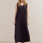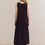 Effortless elegance meets contemporary design in this sleeveless maxi silhouette, defined by its distinctive textured pleating. The relaxed, intentional wrinkles create visual depth and movement, while the floor-length cut offers sophisticated coverage. Perfect for those who appreciate understated refinement and modern styling that transcends seasonal trends.