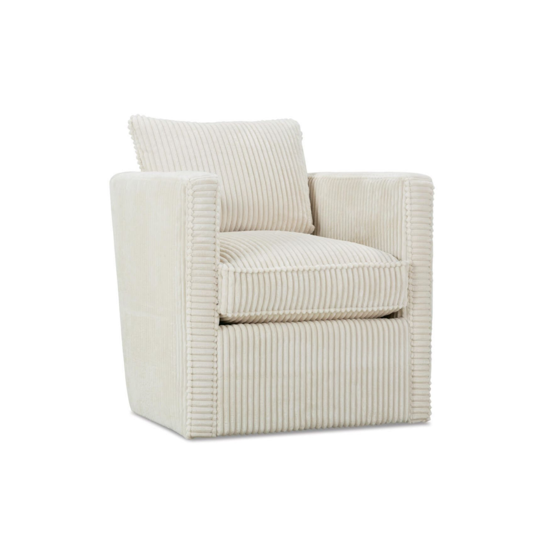 Experience the Rothko Swivel Chair seamlessly blending timeless elegance and contemporary style with its sleek design, shelter arm, cloud-like comfort and high-pile, durable corduroy fabric.