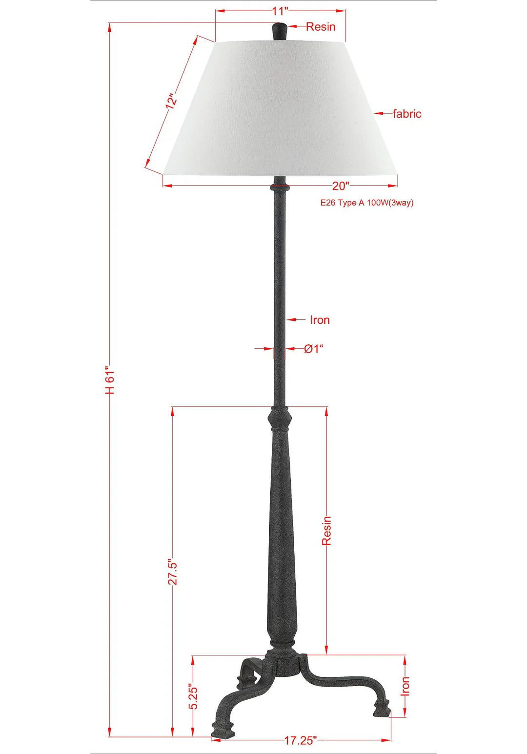 Introducing Ruuthie, our striking three-legged floor lamp blending French style with traditional design. Crafted from black iron, its tripod base boasts elegant curved legs. Topped with an empire white linen shade, Ruthie exudes understated charm and refined simplicity, adding an elegant touch to any space.