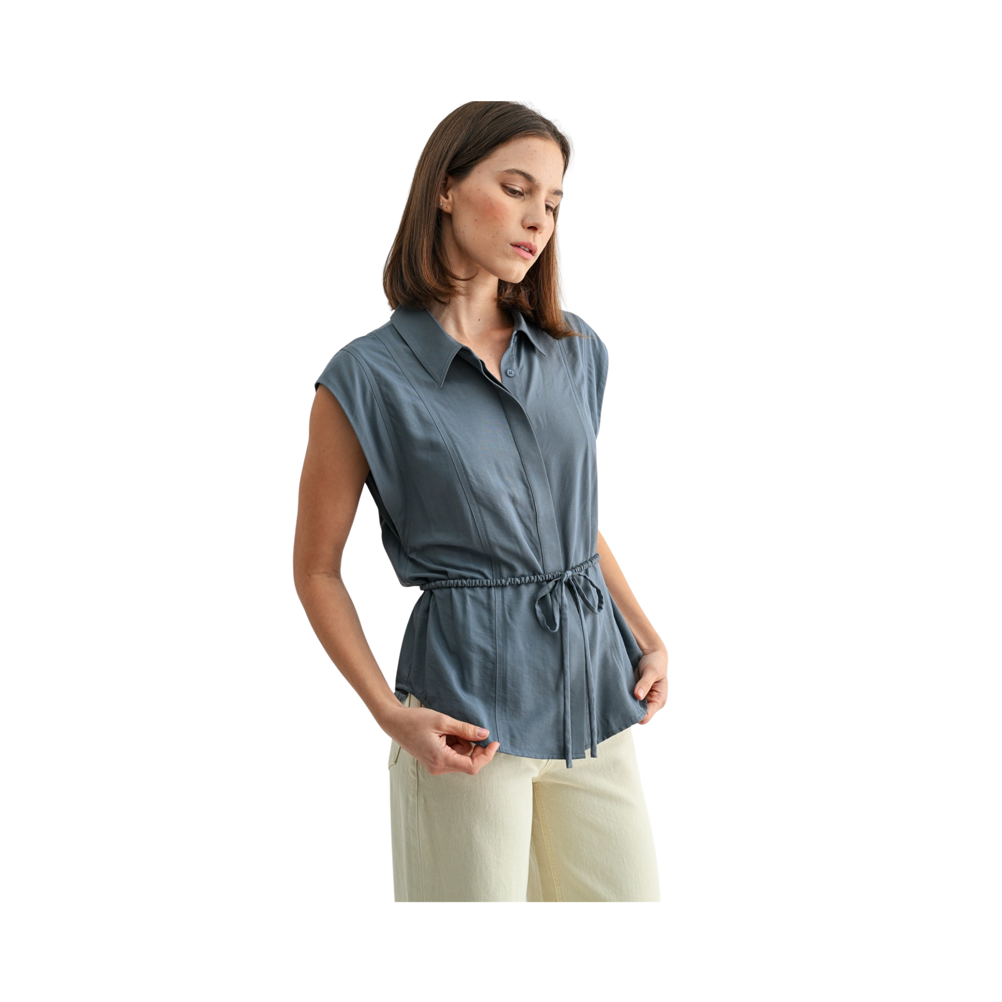 Elevate your everyday wardrobe with this sophisticated button-down top featuring a charming tie waist detail. The covered button front adds a polished touch, while the cinched waist creates a flattering silhouette that transitions seamlessly from office to weekend. Crafted for comfort and style, this versatile piece pairs effortlessly with jeans, trousers, or skirts for endless outfit possibilities.